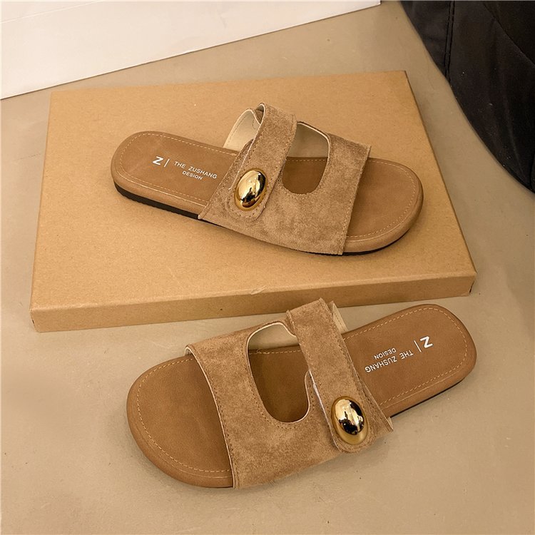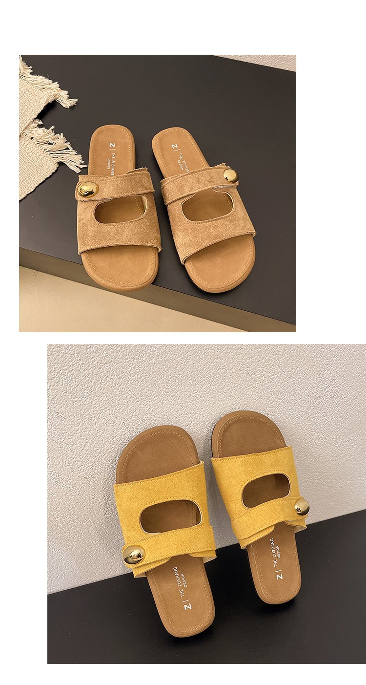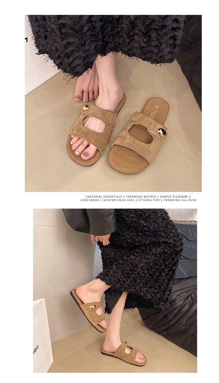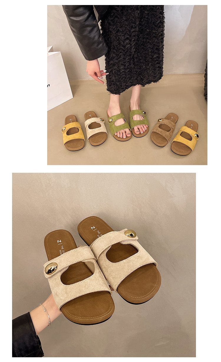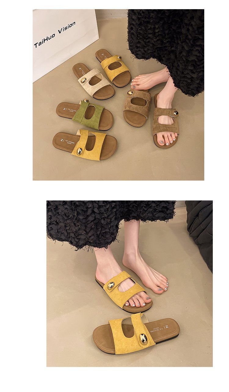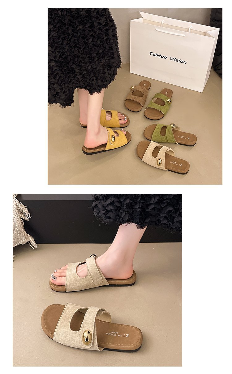 [아마노] 플랫 벨크로 샌들 · 슬리퍼 여성 여름복 패션 2025 신형 해변 슬리퍼