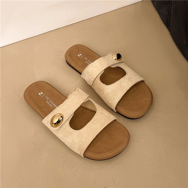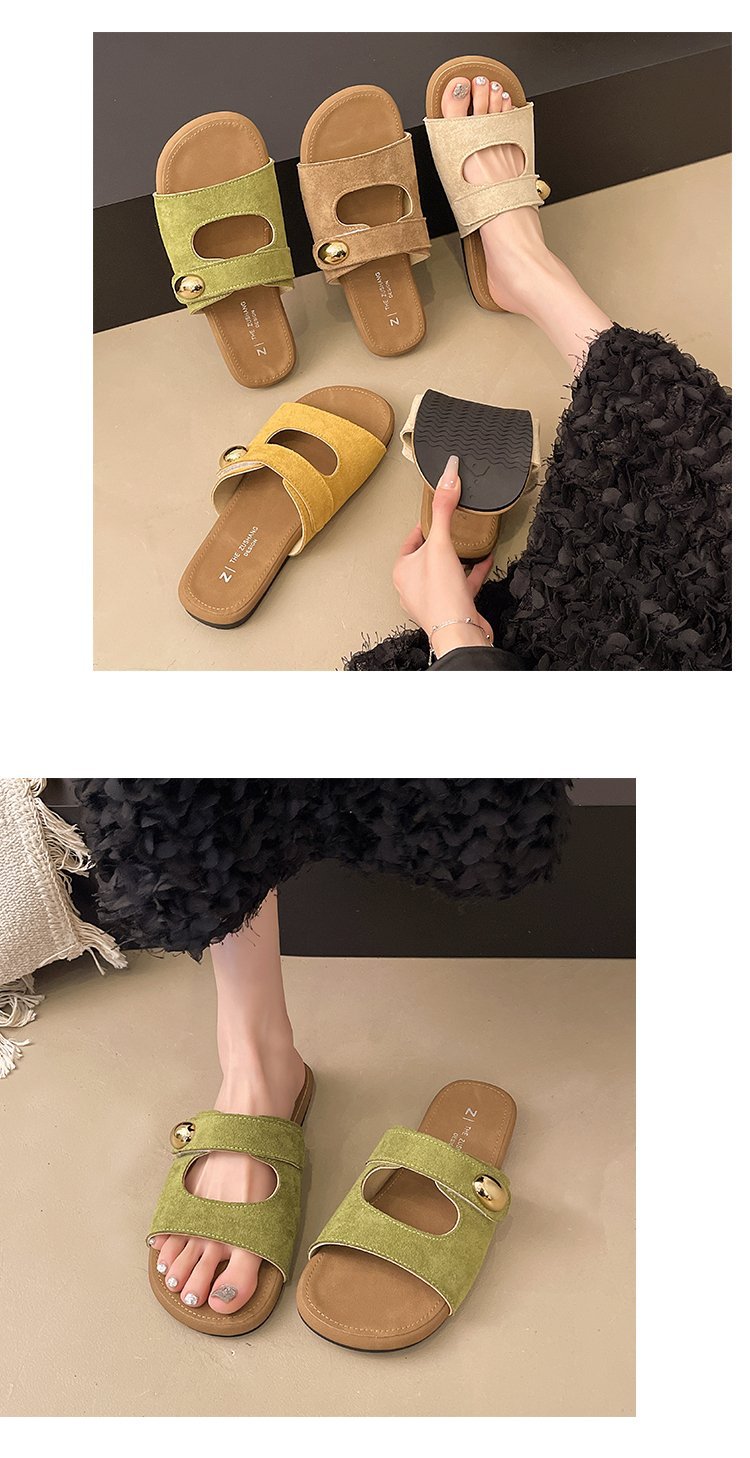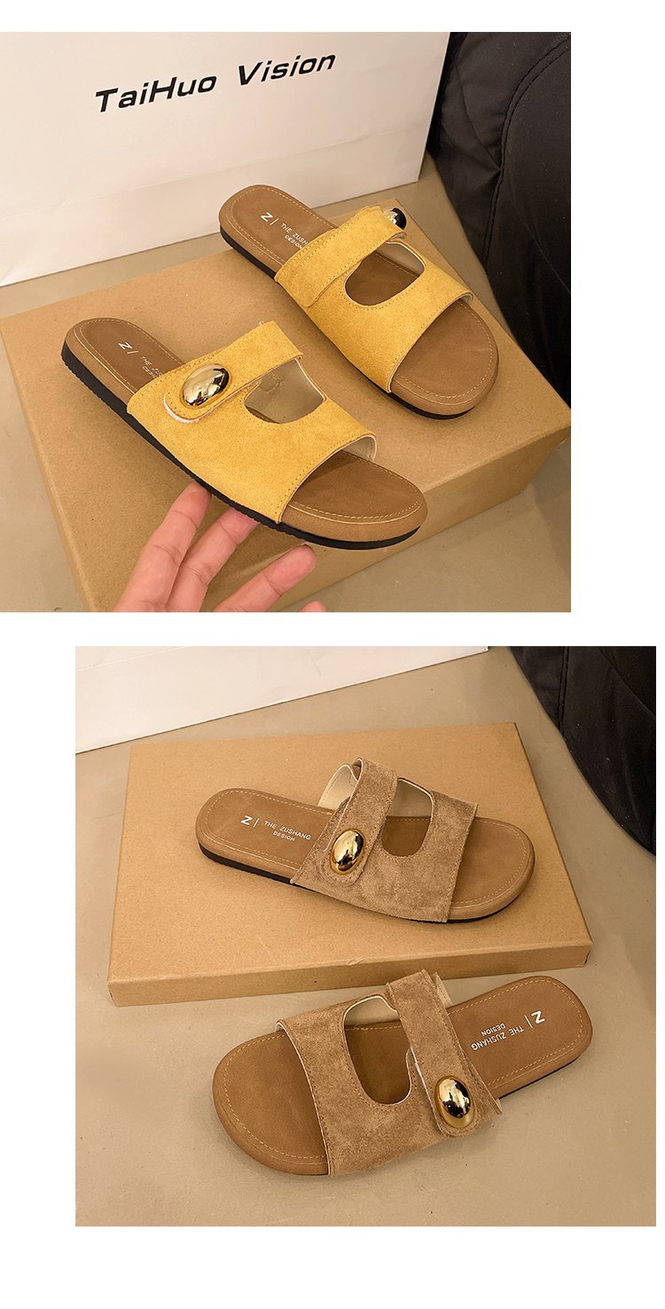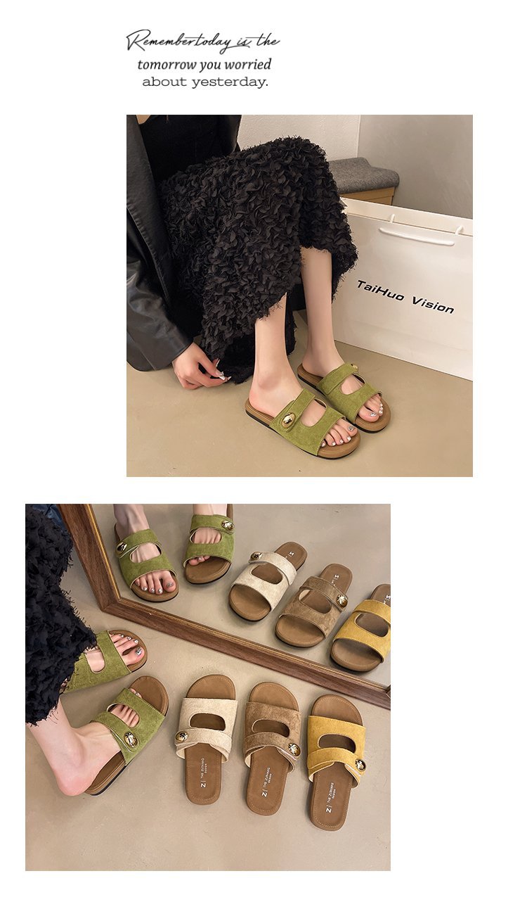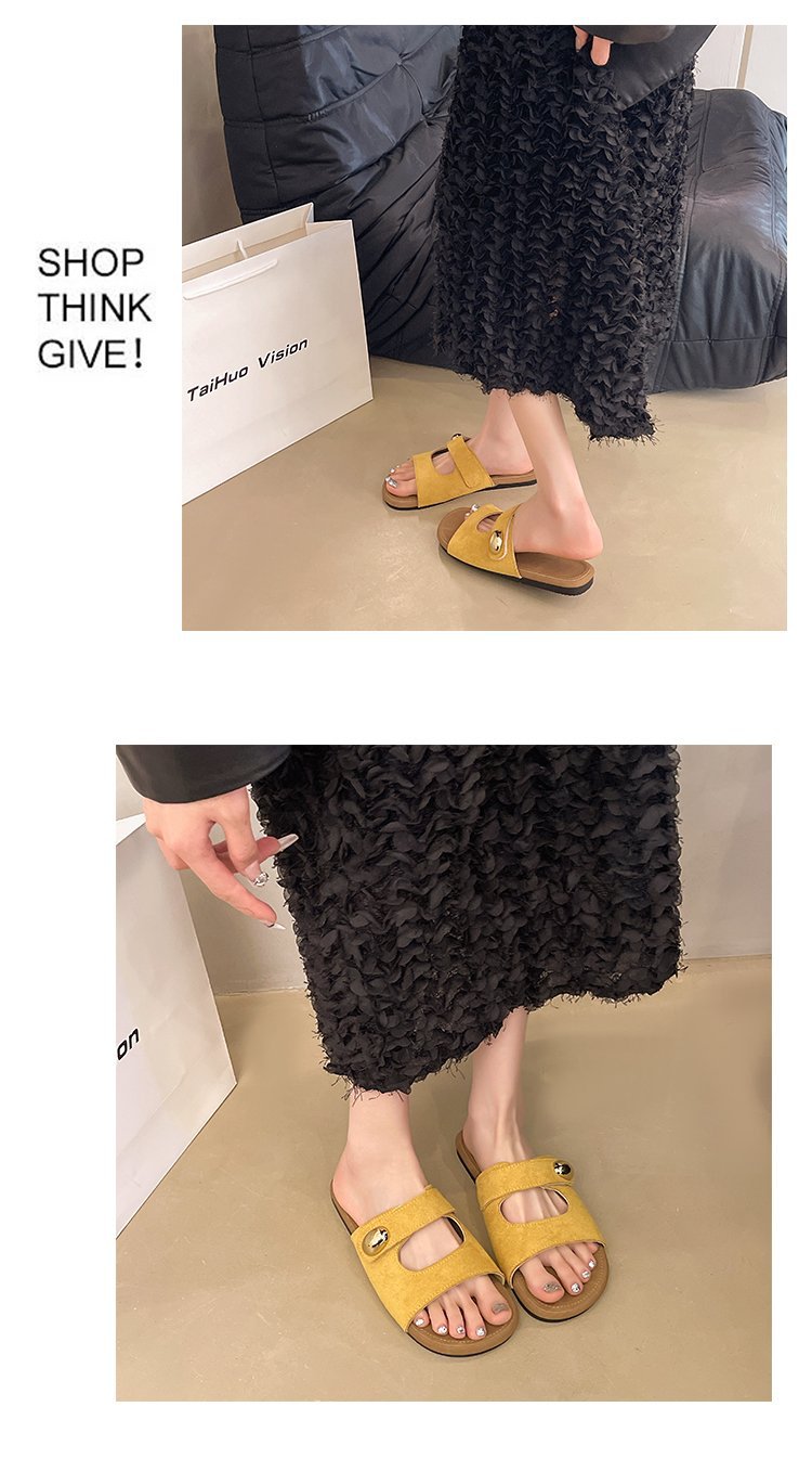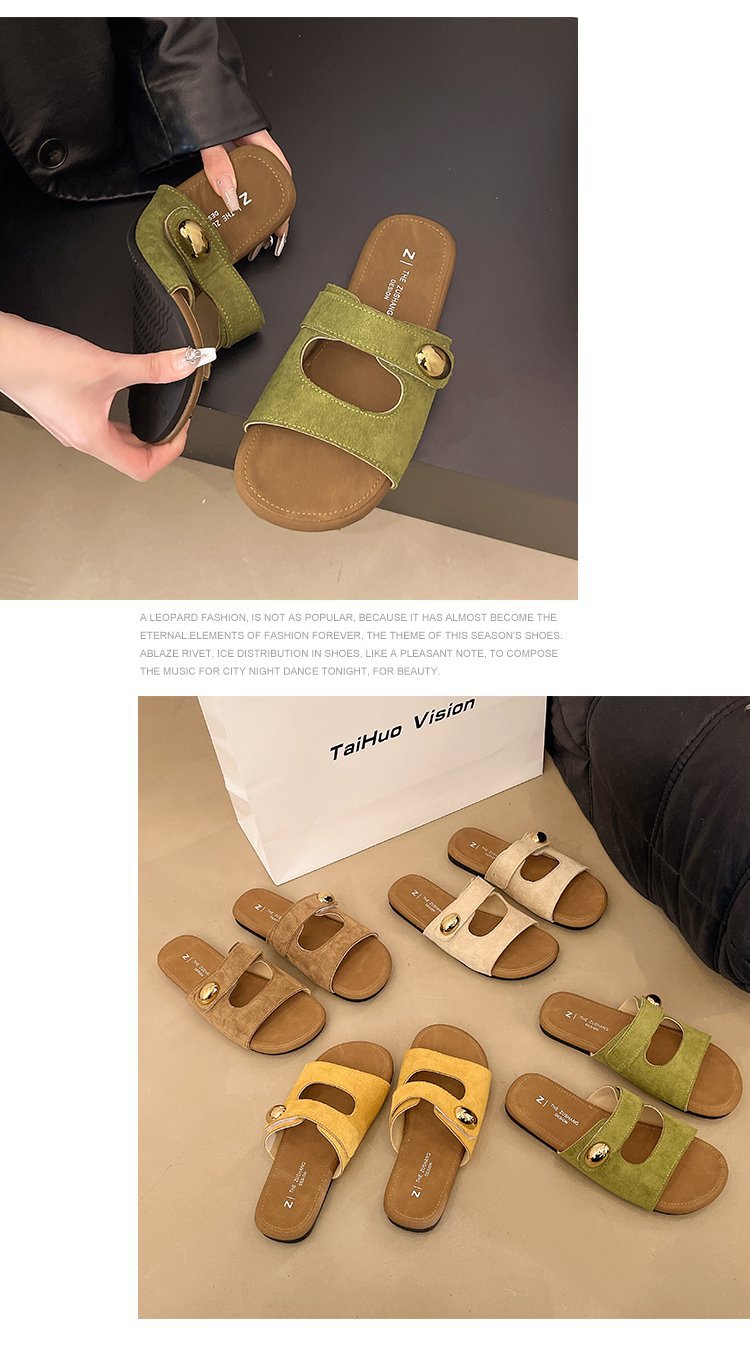 [아마노] 플랫 벨크로 샌들 · 슬리퍼 여성 여름복 패션 2025 신형 해변 슬리퍼