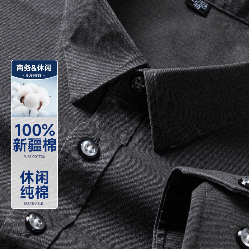하이 엔드 순수 코튼 셔츠 긴팔 남성 한국 스타일 트렌디하고 잘 생긴 셔츠 ins 홍콩 스타일 캐주얼 남성 솔리드 컬러 인치 셔츠스토어 가기