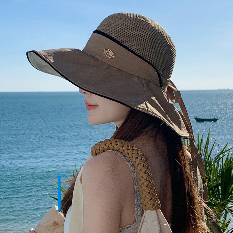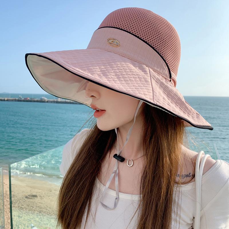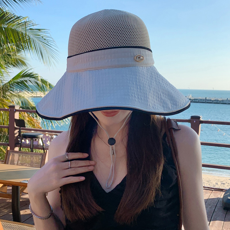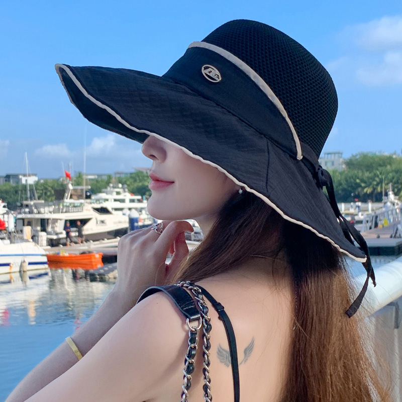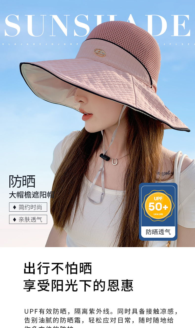 태양 모자 2025 봄과 여름 새로운 스타일 접합 대형 챙 비닐 태양 모자 여성 캐주얼 다목적 한국 태양 모자스토어 가기