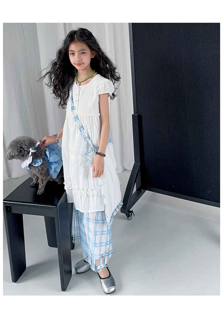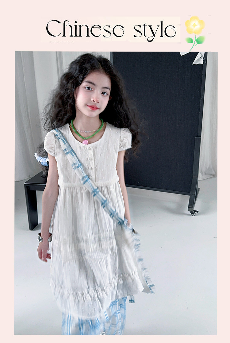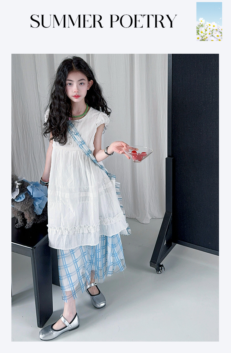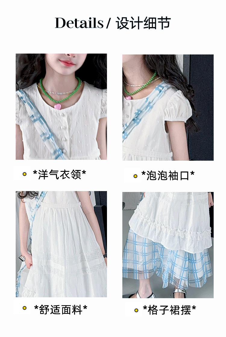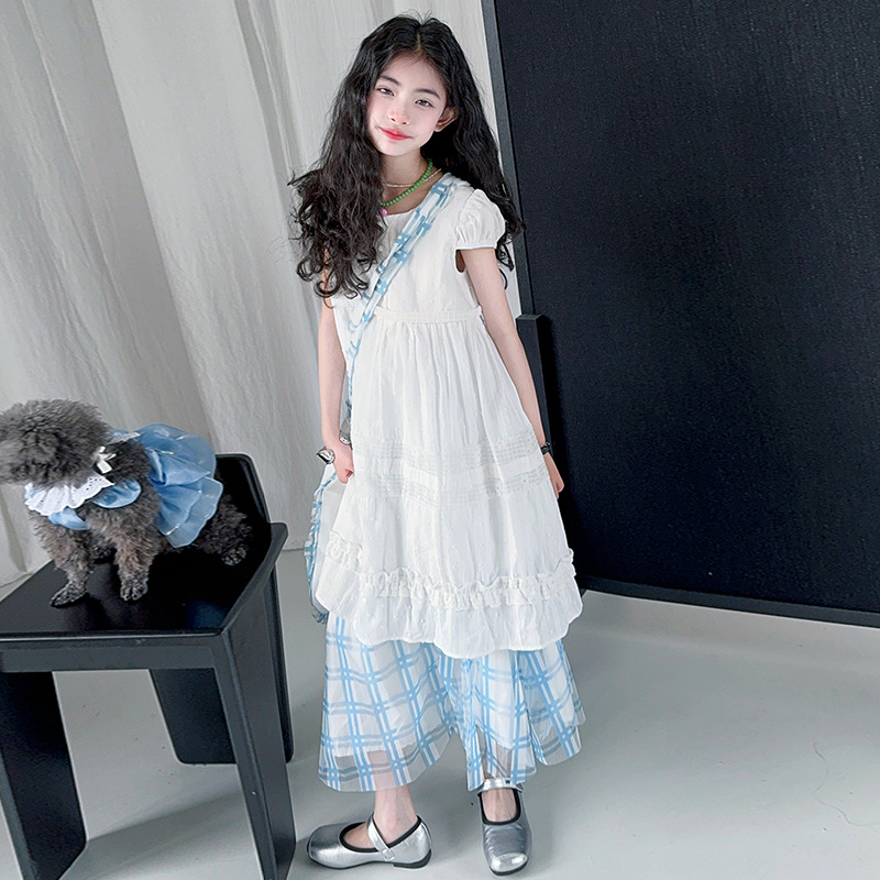 소녀 원피스 2025 여름 새로운 스타일 어린이 유행 서양식 격자 무늬 바느질 원피스 느슨한 공주 원피스