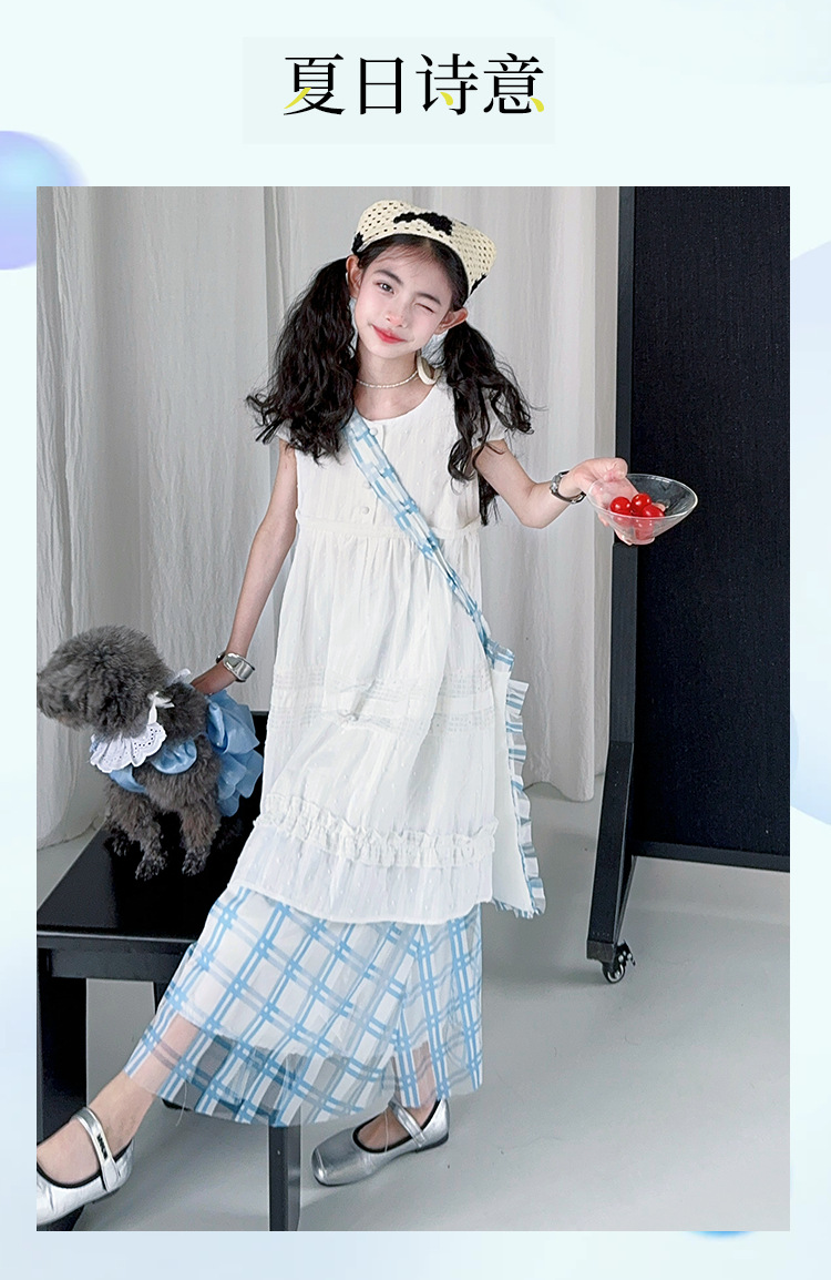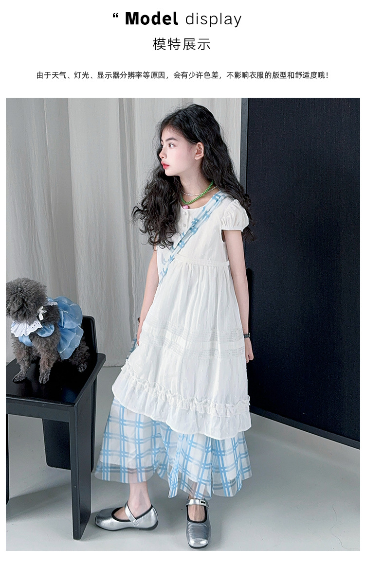 소녀 원피스 2025 여름 새로운 스타일 어린이 유행 서양식 격자 무늬 바느질 원피스 느슨한 공주 원피스스토어 가기