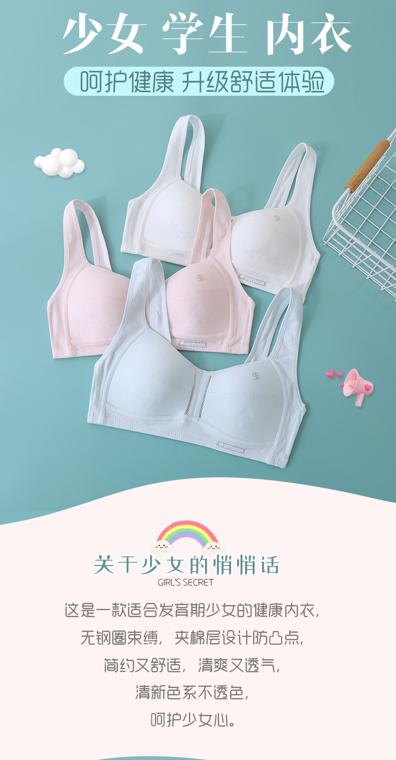 발달기 여아용 브라, 중고생용 여름용 얇은 스포츠 충격흡수 조끼, 돌출방지 여아용 속옷스토어 가기