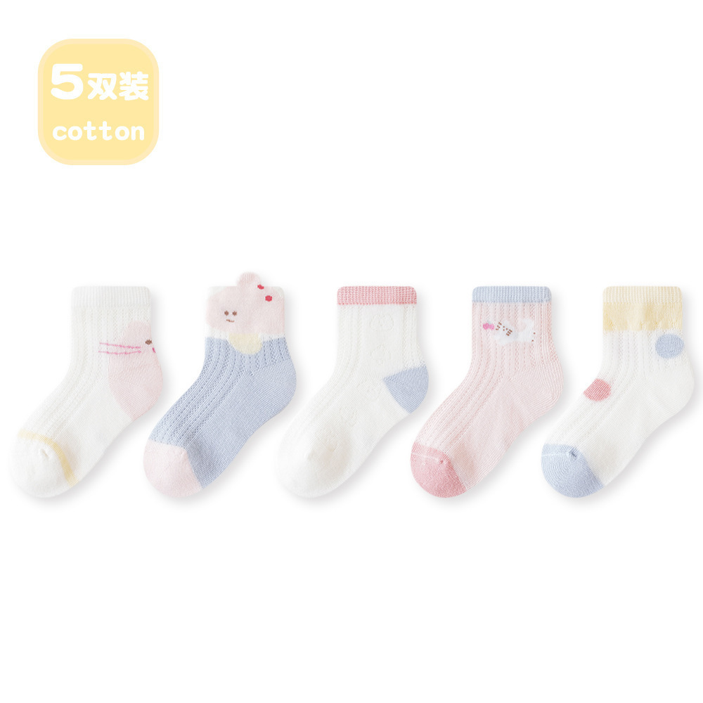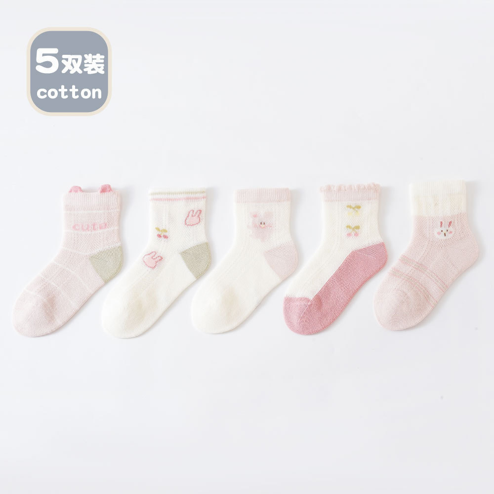 25 년 어린이 양말 중간 배럴 남녀 뼈없는 양말 만화 봄과 여름 얇은 클래스 A 메쉬 양말 아기 면 양말