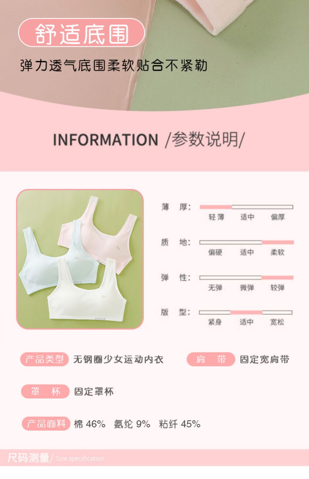 발달 청소년 소녀 속옷 속옷 조끼 중학생 고등학생 13세 14세 아동 브라