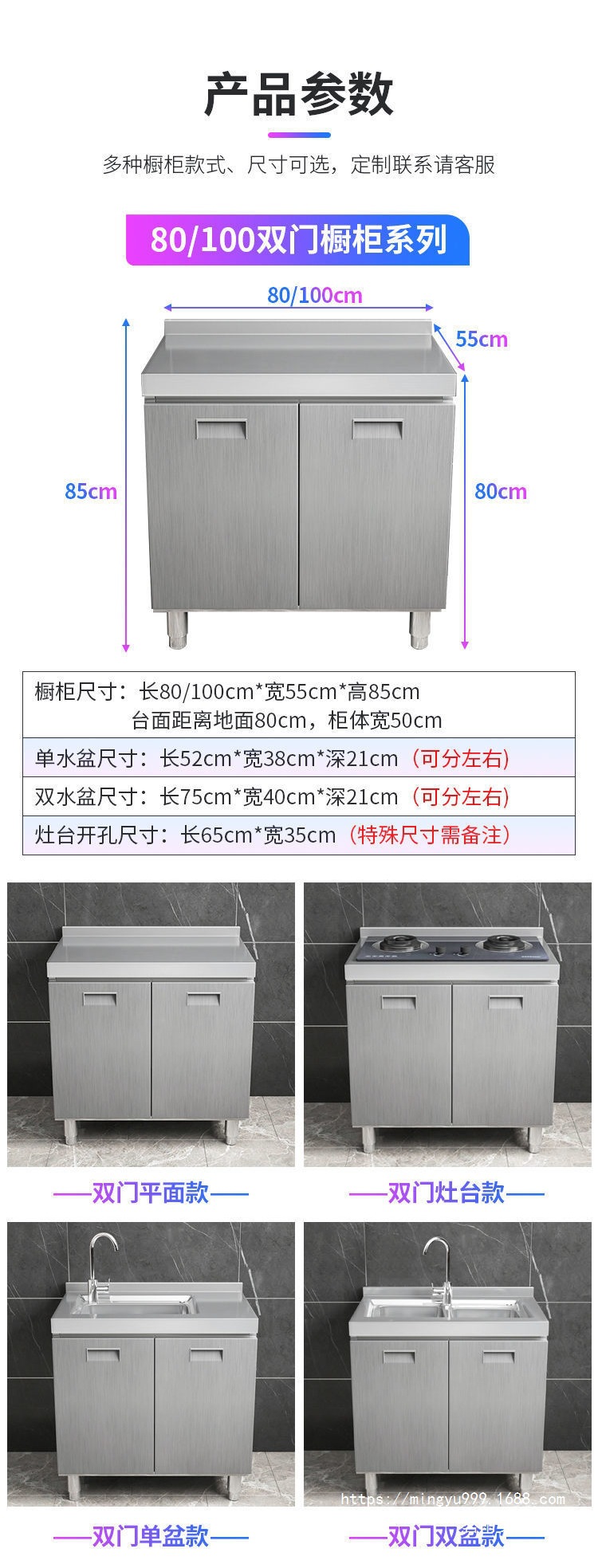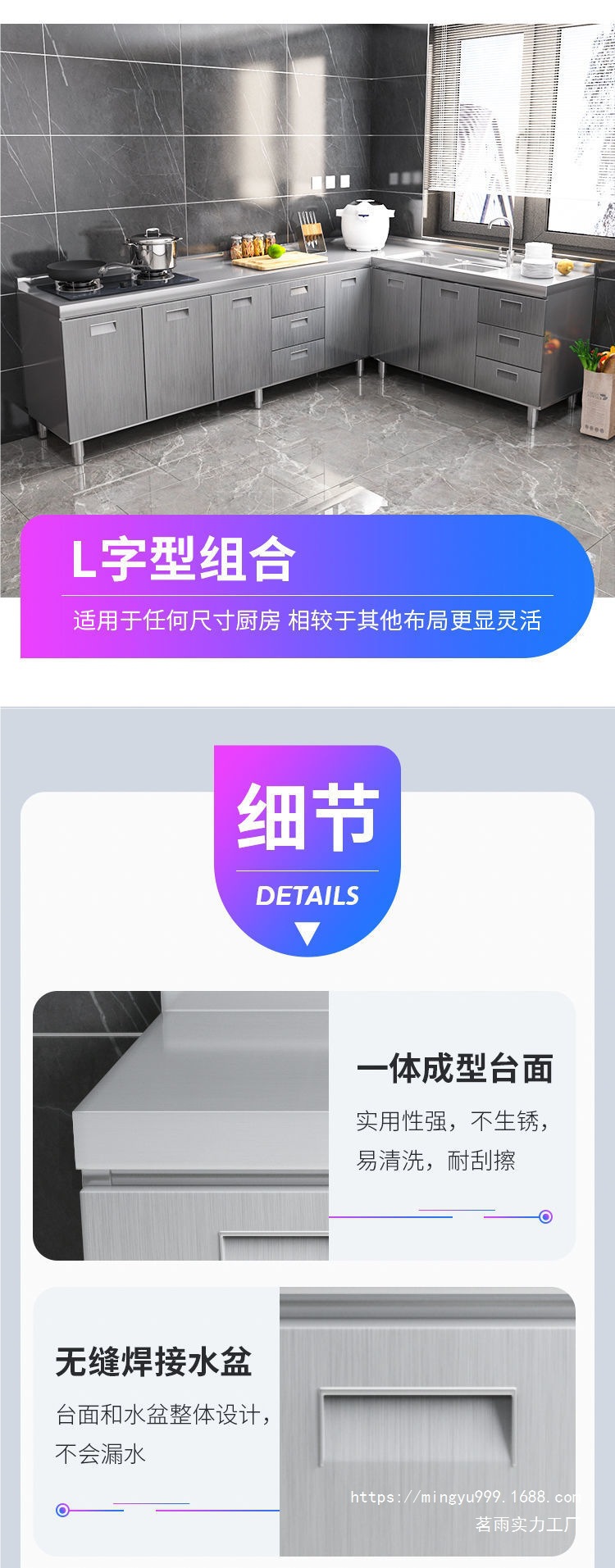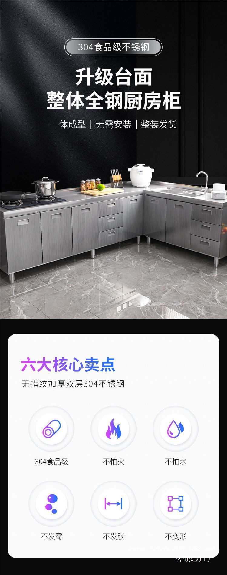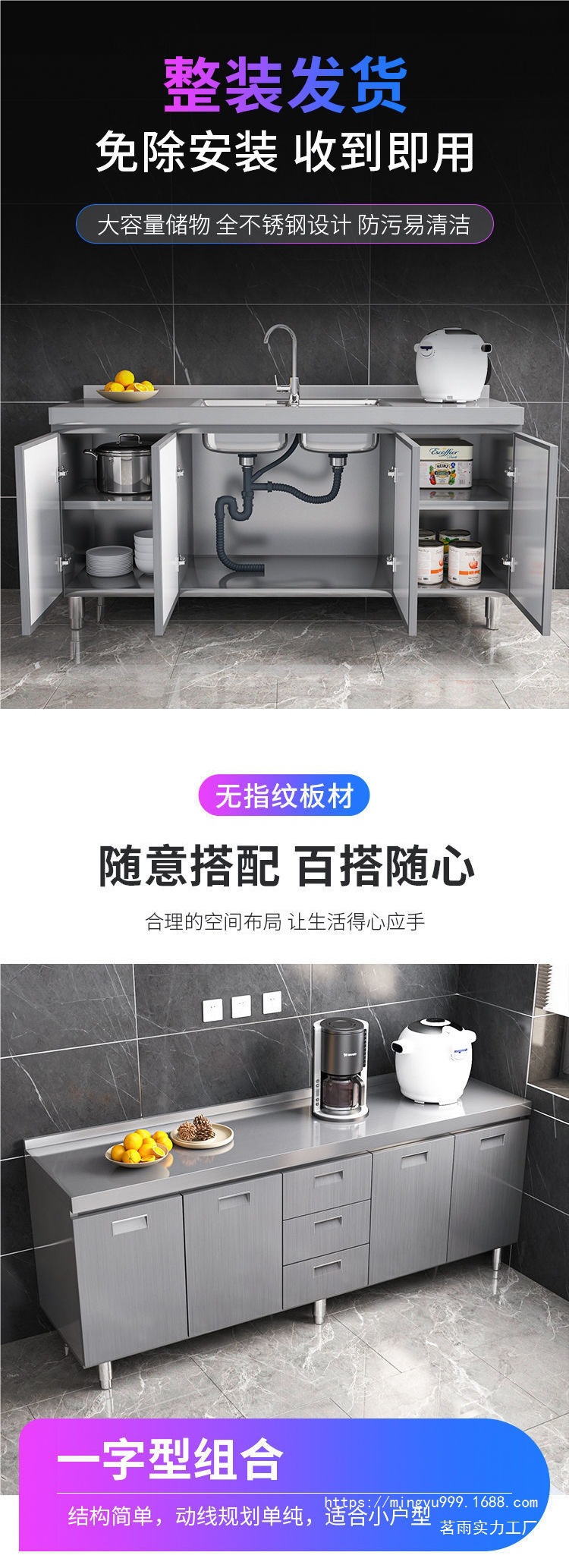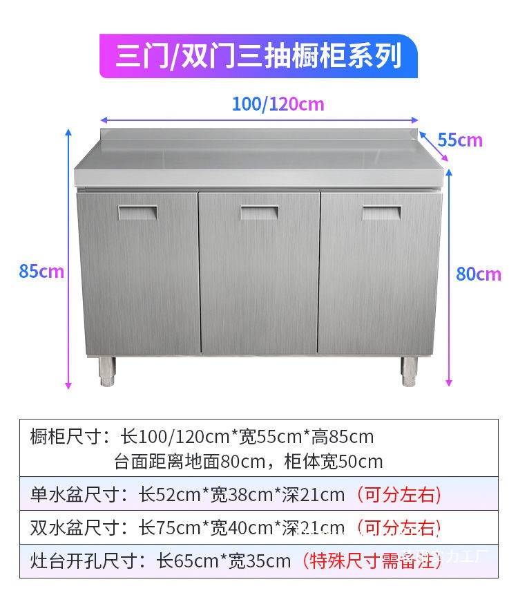 Tal304 전체 스테인리스 스틸 주방 캐비닛 간단한 스토브 통합 스토리지 찬장 가정용 작은 가구스토어 가기