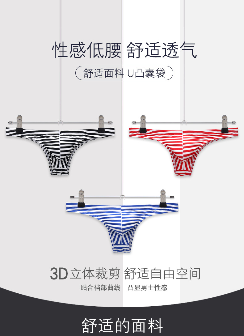 제조 업체 도매 남성 속옷 패션 스트라이프 비키니 섹시 로우 허리 작은 엉덩이 커버 U 볼록 팬티 원피스스토어 가기