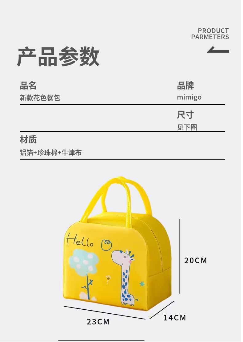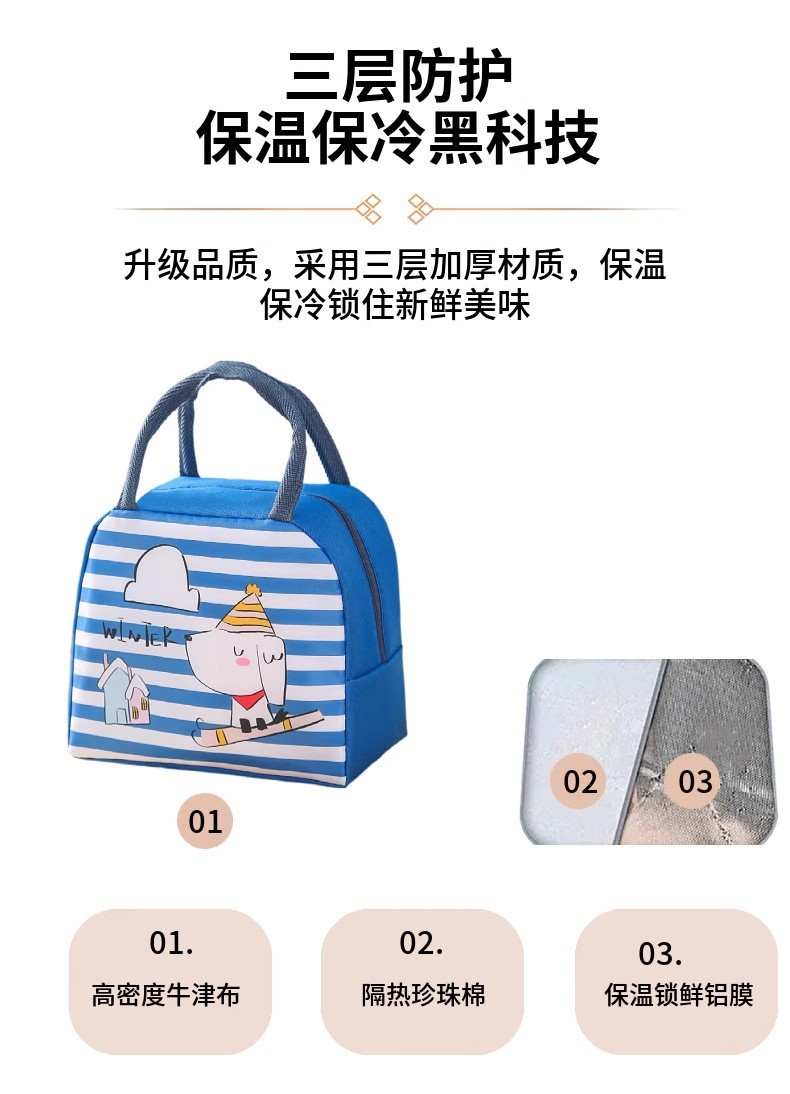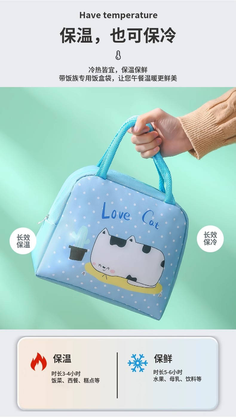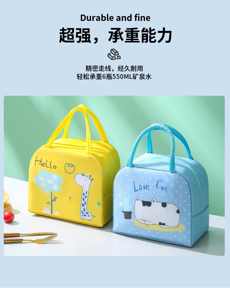 새로운 만화 도시락 가방, 도시락 가방, 귀여운 애완동물 보온 가방, 학교 및 직장용 도시락 가방, 여행용 보관 아이스 백