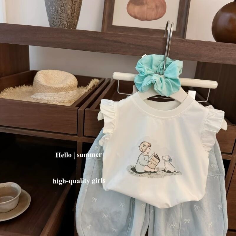 [통 싱위안] 민트 그린! 아기 소녀 한국 귀여운 비행 슬리브 티셔츠 활 블루머 투피스 세트스토어 가기