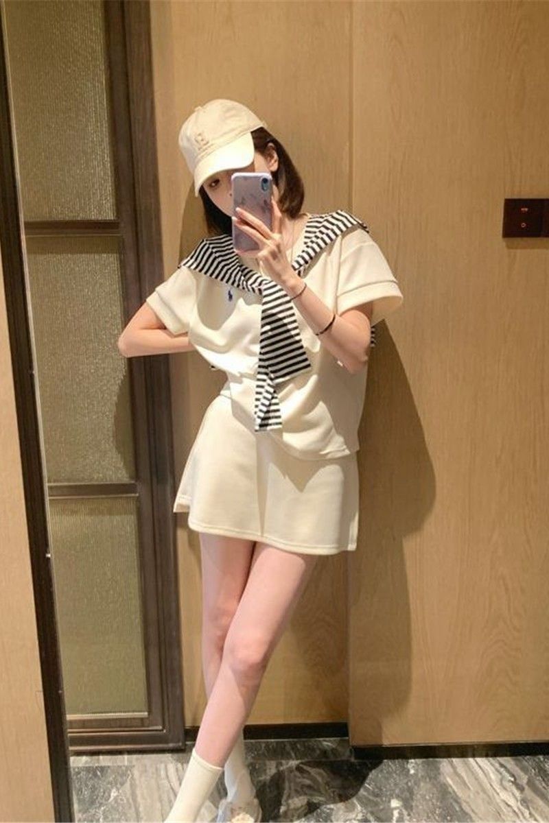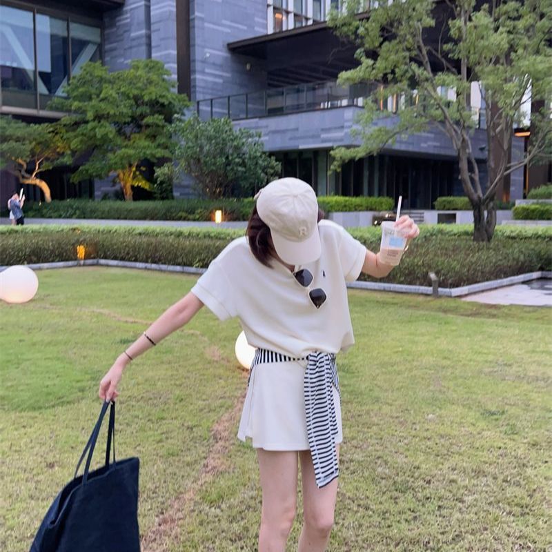 대외 무역 유럽 상품 캐주얼 패션 스포츠 세트 여성 여름 루즈 포니 반팔 티셔츠 흉상 바지 스커트 3 종 세트스토어 가기