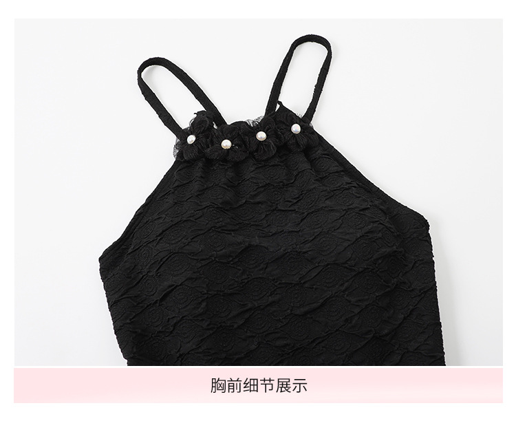 2025 Xiaoxiangfeng 검은 꽃 홀터넥 원피스 수영복, 고급, 살을 커버하고 슬리밍, 순수한 욕망 휴가 온천 수영복