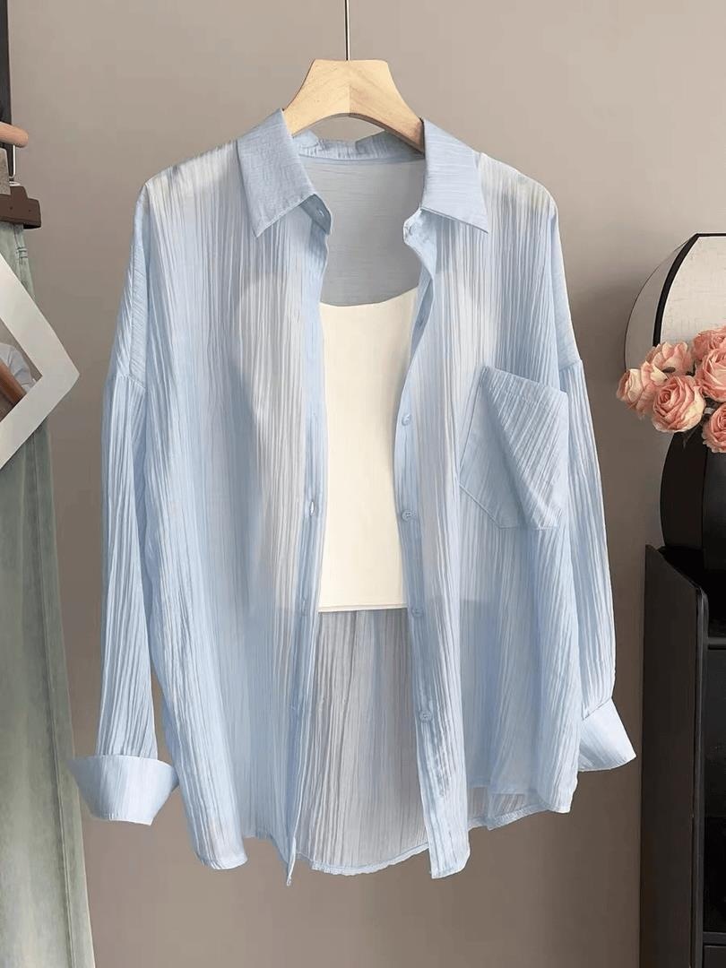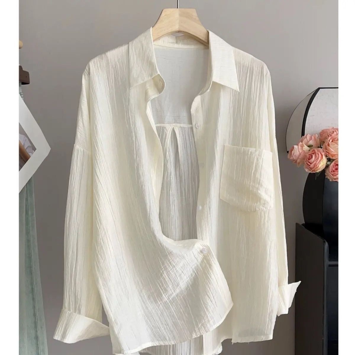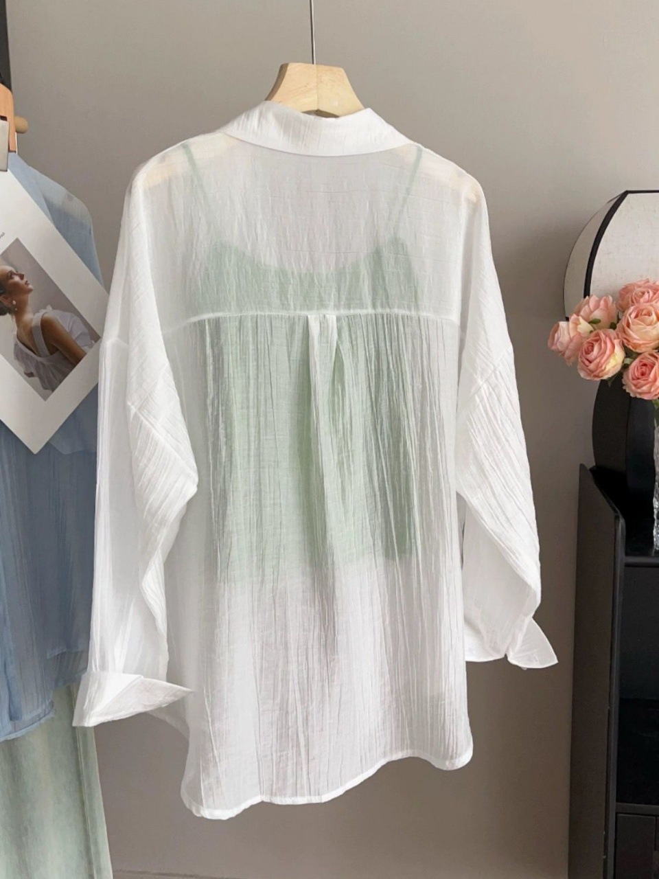 텐셀 주름 여성용 선 스크린 셔츠 2025 여름 새로운 미디어와 긴 얇은 자외선 느슨한 통기성 슬리밍 탑