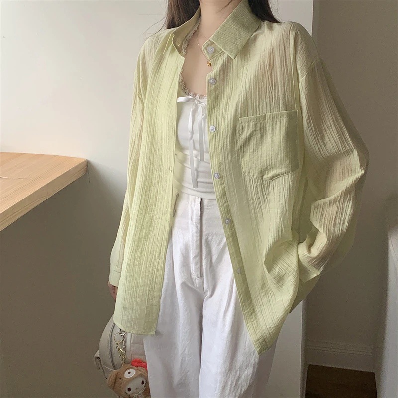 텐셀 주름 여성용 선 스크린 셔츠 2025 여름 새로운 미디어와 긴 얇은 자외선 느슨한 통기성 슬리밍 탑스토어 가기