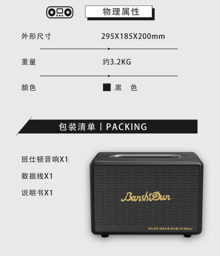 반스톤 블루투스 스피커 가정용 오디오 충전식 중저음 스피커 HIFI906p 야외 휴대용 스테레오스토어 가기