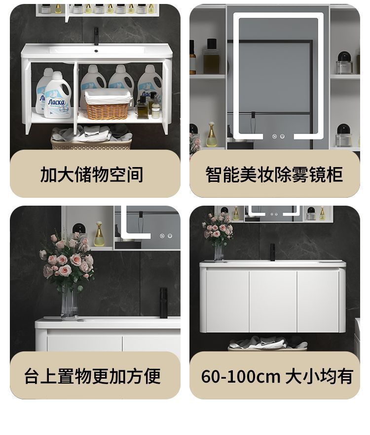 • 80CM 아크 스마트 거울 캐비닛 + 피부 느낌 올인원 세면대 패키지