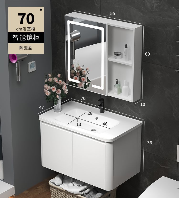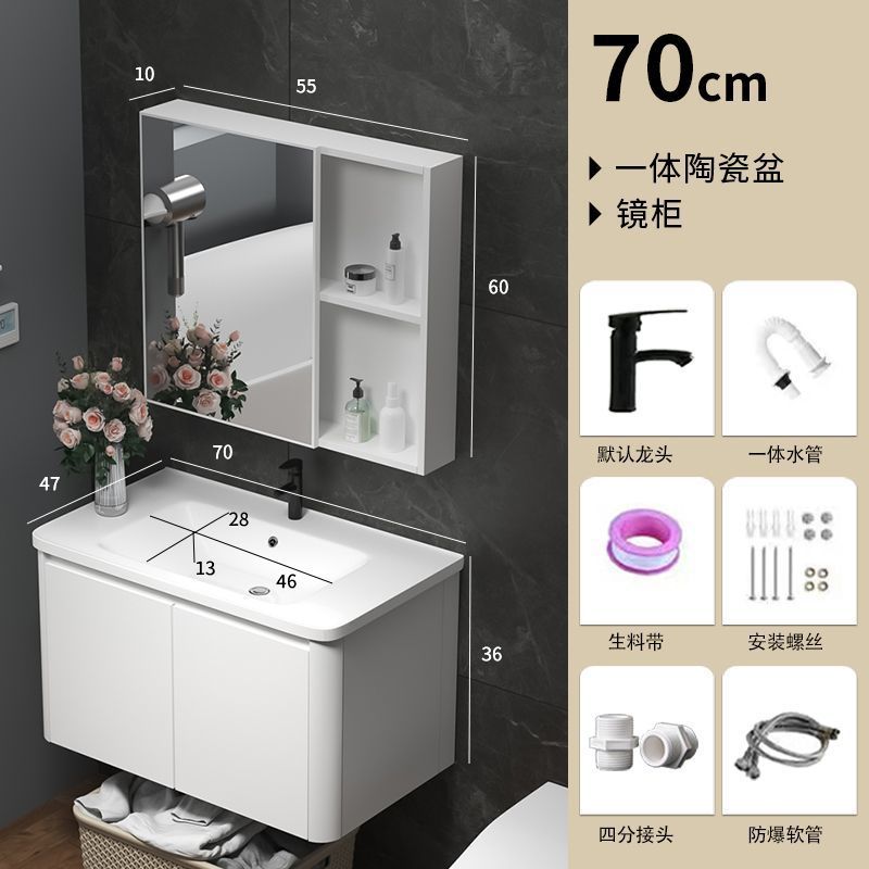 • 70CM 아크 일반 거울 캐비닛 + 피부 느낌 일체형 세면대 패키지