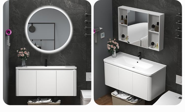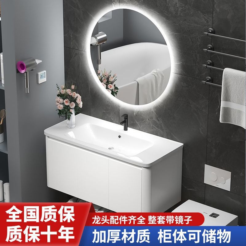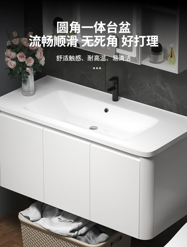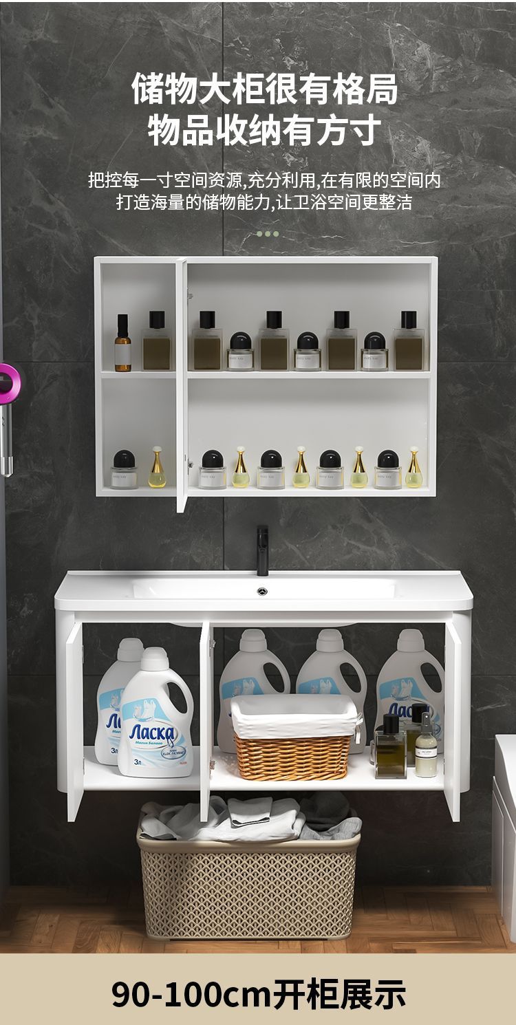 • 90CM 아크 일반 거울 캐비닛 + 피부 친화적인 일체형 세면대 패키지