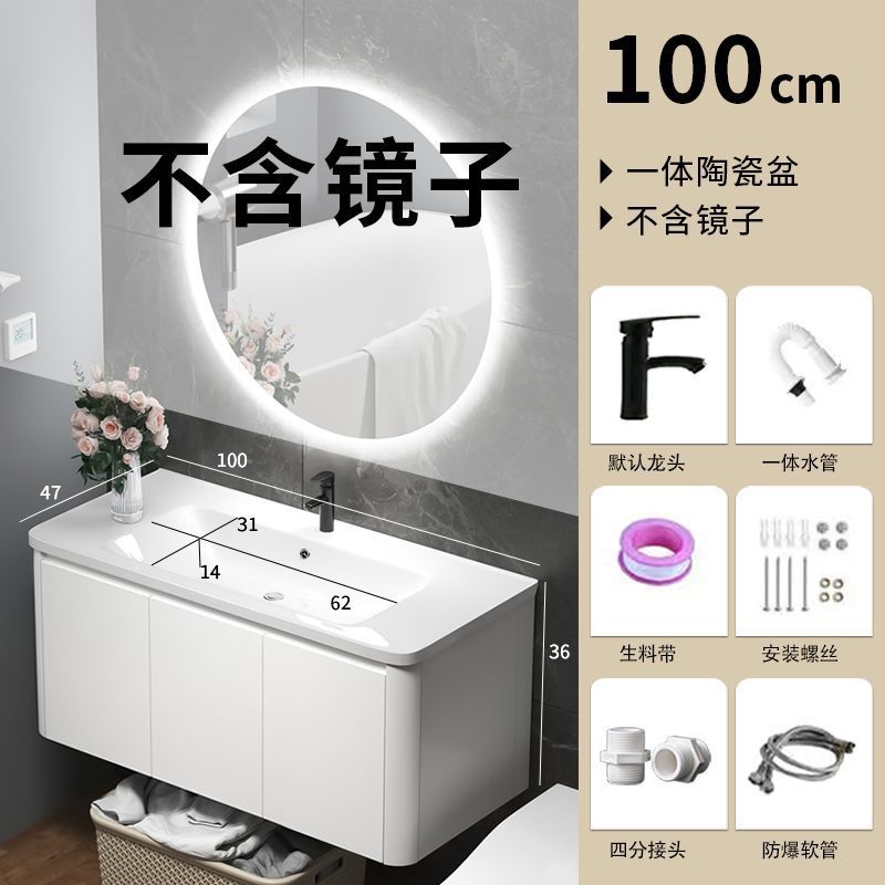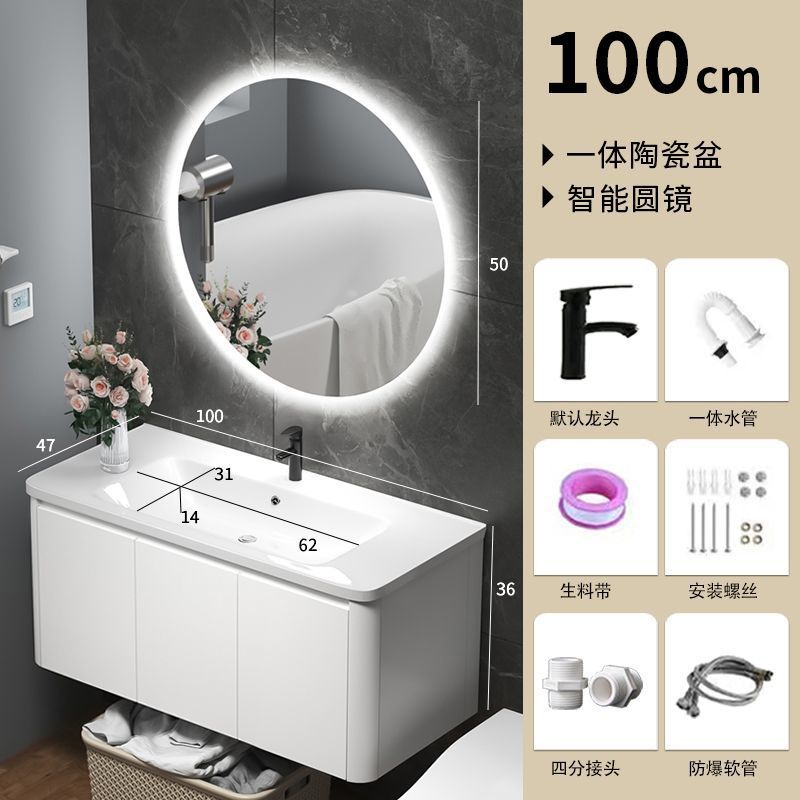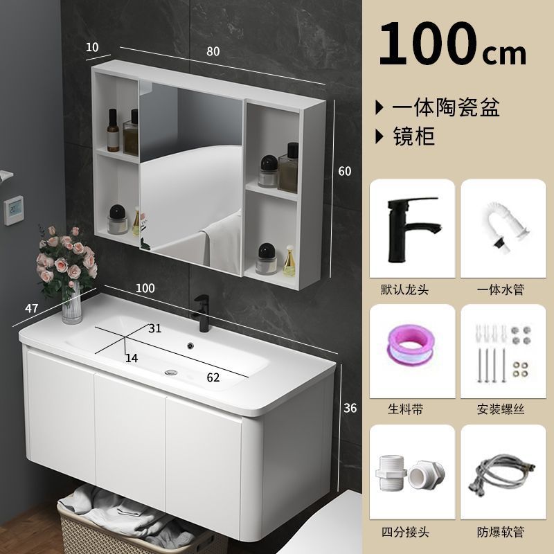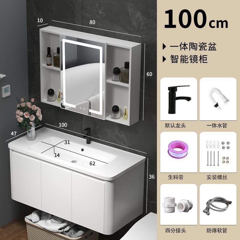 • 100CM 아크 일반 거울 캐비닛 + 피부 친화적인 일체형 세면대 패키지