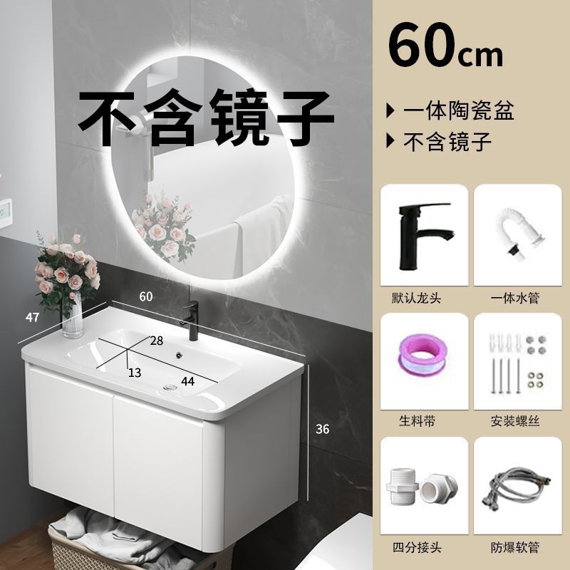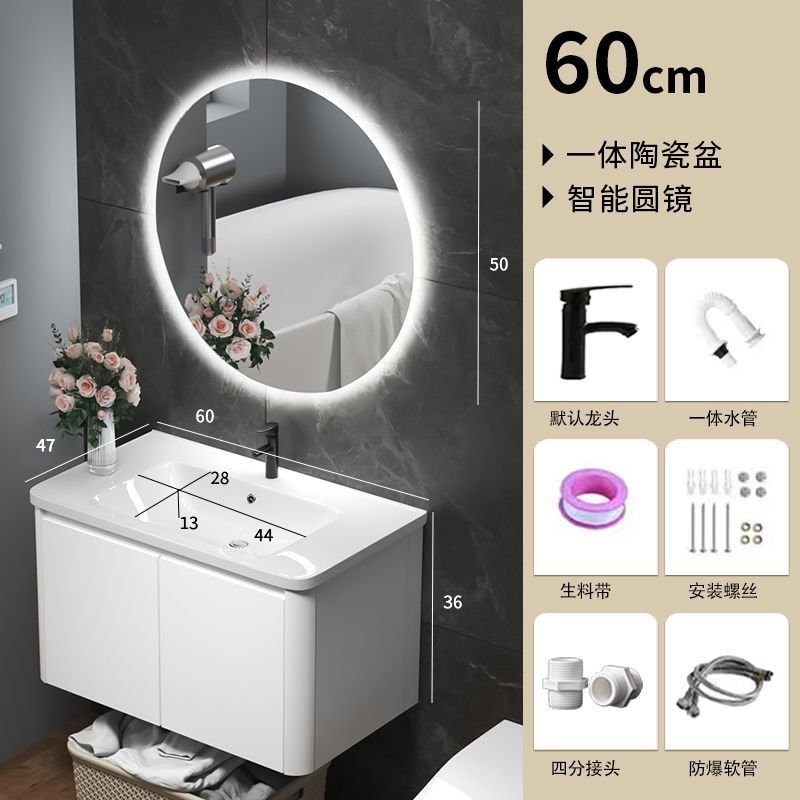 • 60CM 아크 일반 거울 캐비닛 + 피부 친화적인 일체형 세면대 패키지