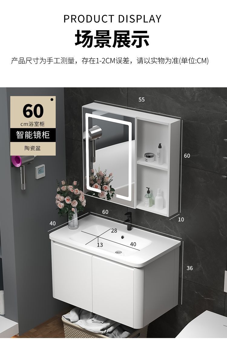 • 60CM 아크 스마트 거울 캐비닛 + 피부 친화적인 일체형 세면대 패키지