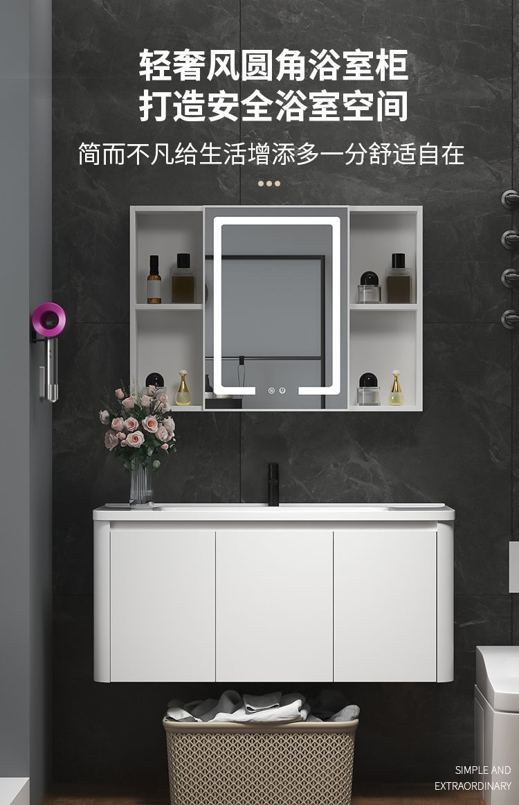 • 90CM 아크 스마트 거울 캐비닛 + 피부 친화적인 일체형 세면대 패키지