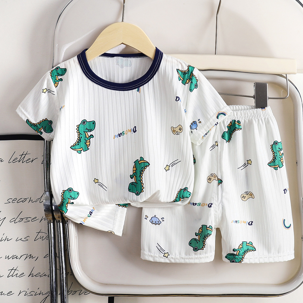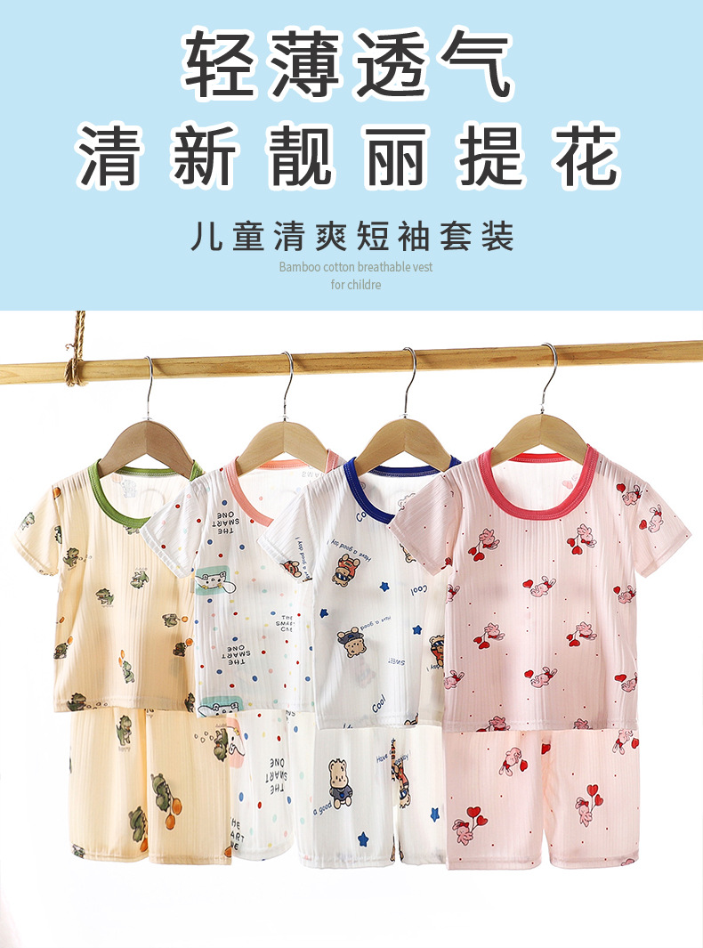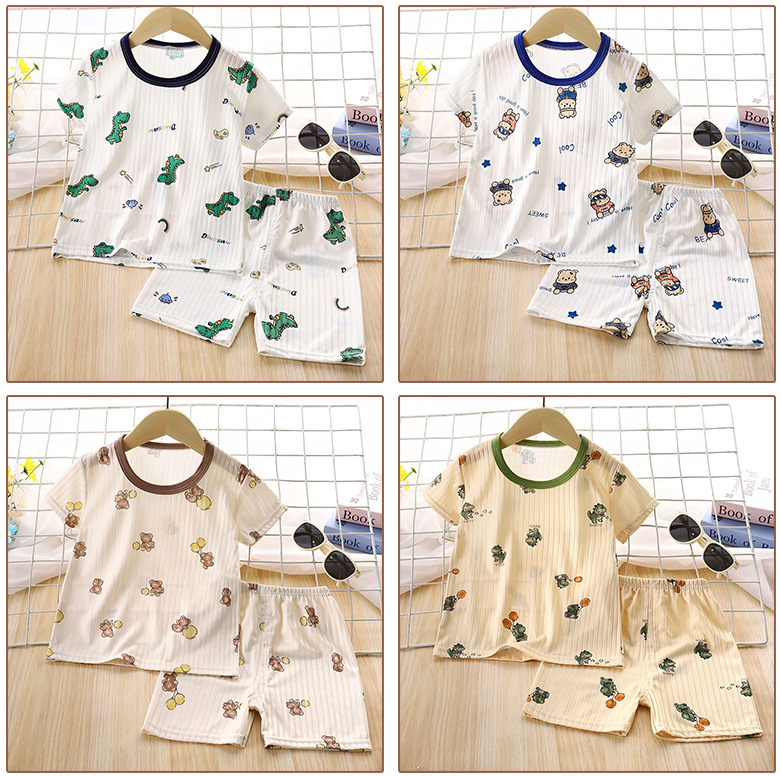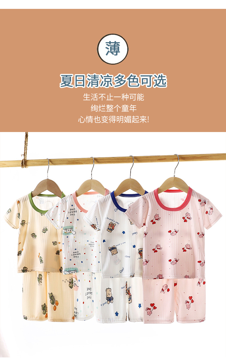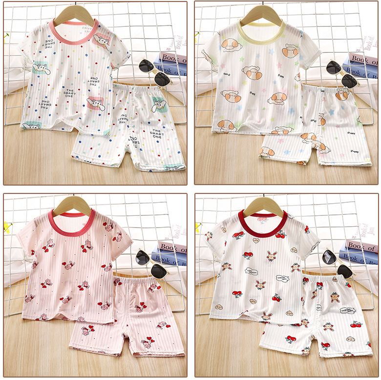 여름 어린이 반팔 반바지 아이스 실크 세트 소년 소녀 얇은 에어컨 의류 아기 잠옷 홈 의류 도매스토어 가기