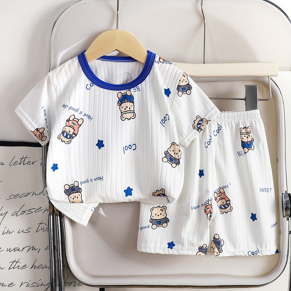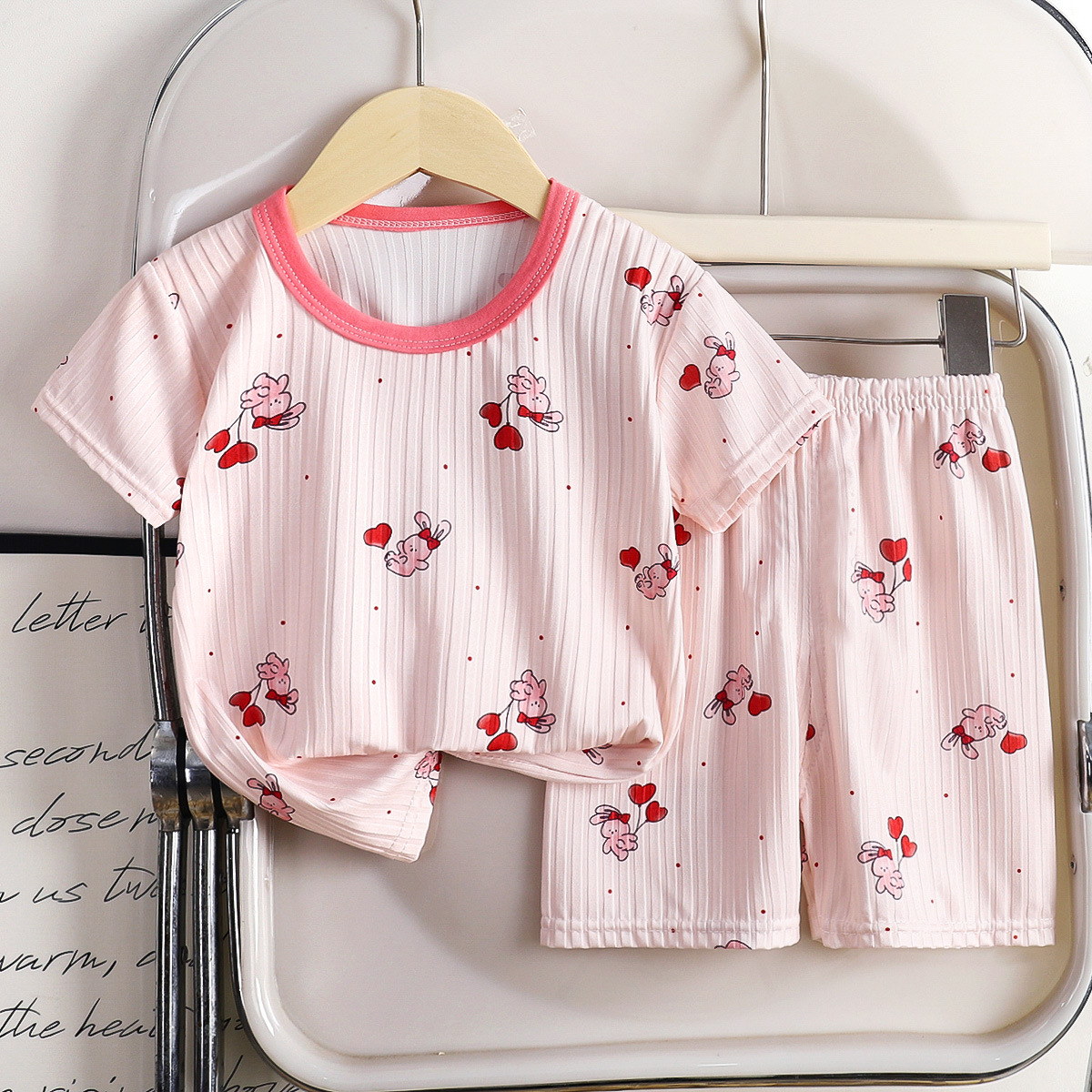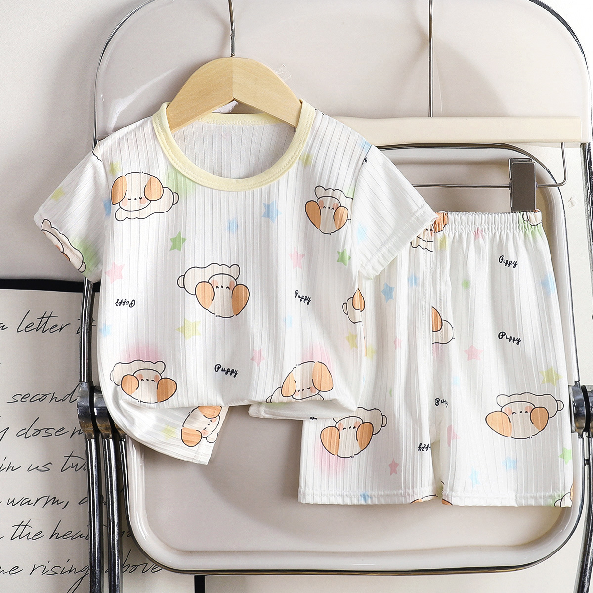 여름 어린이 반팔 반바지 아이스 실크 세트 소년 소녀 얇은 에어컨 의류 아기 잠옷 홈 의류 도매스토어 가기