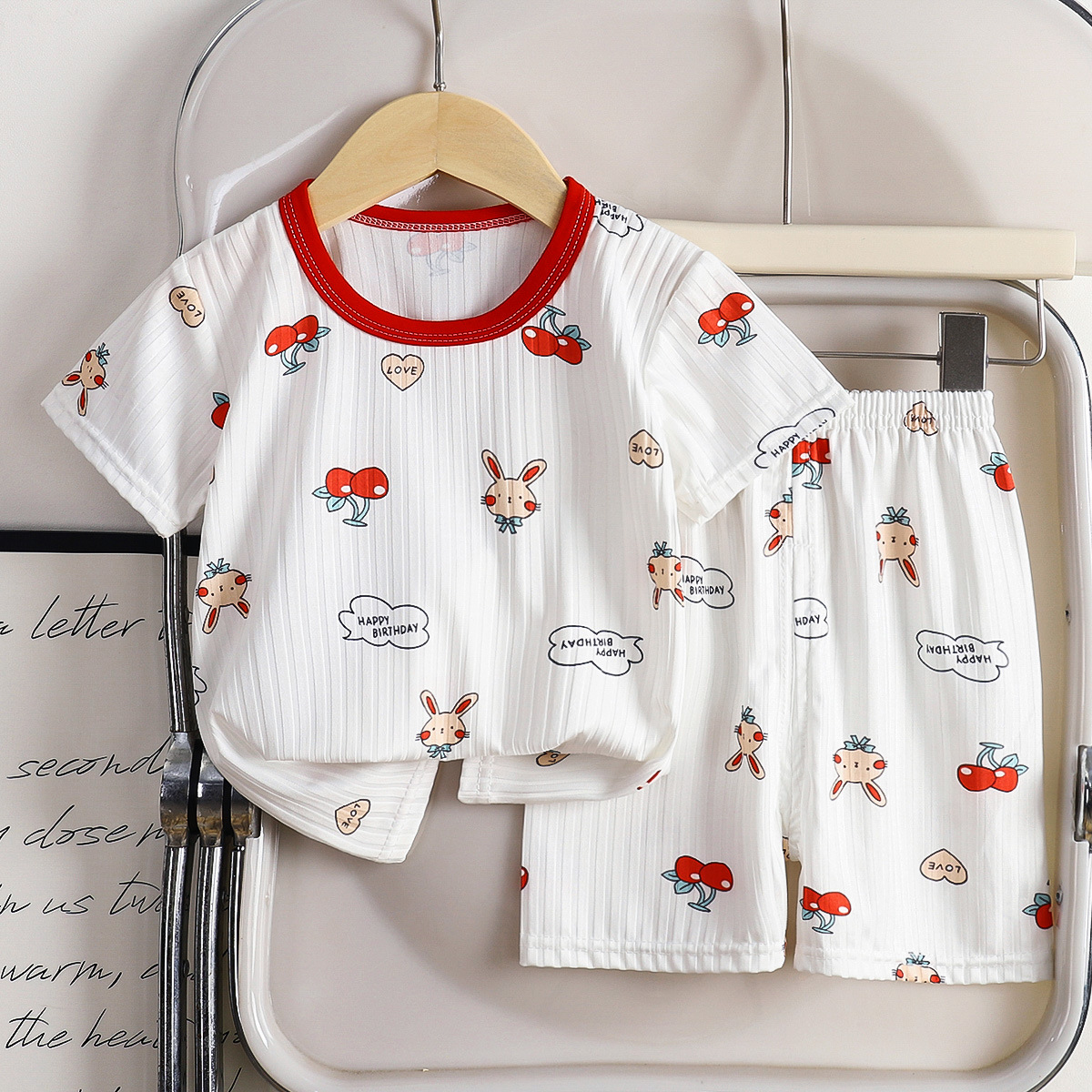 여름 어린이 반팔 반바지 아이스 실크 세트 소년 소녀 얇은 에어컨 의류 아기 잠옷 홈 의류 도매
