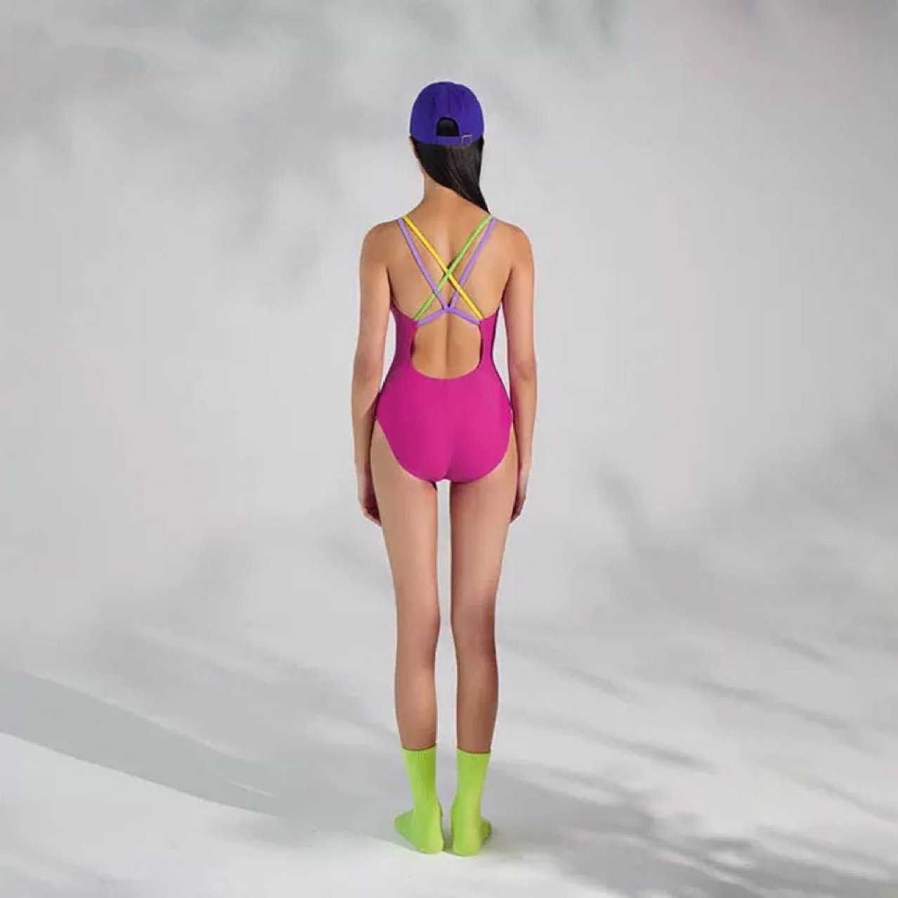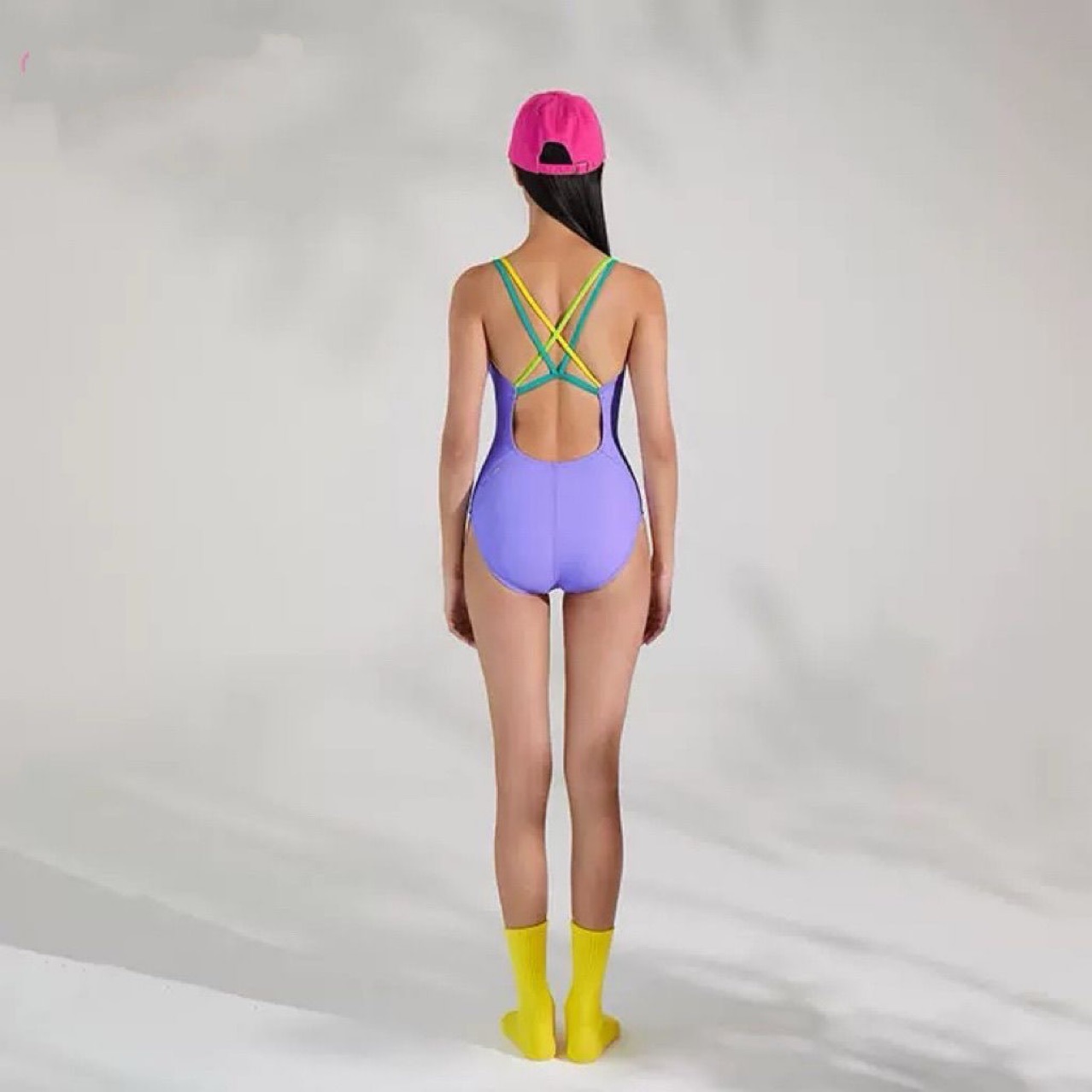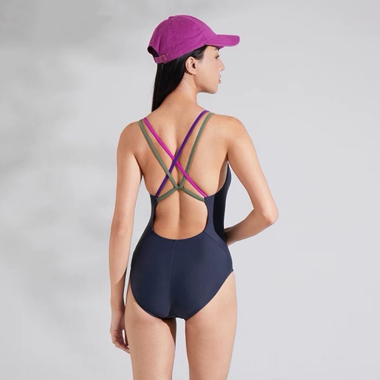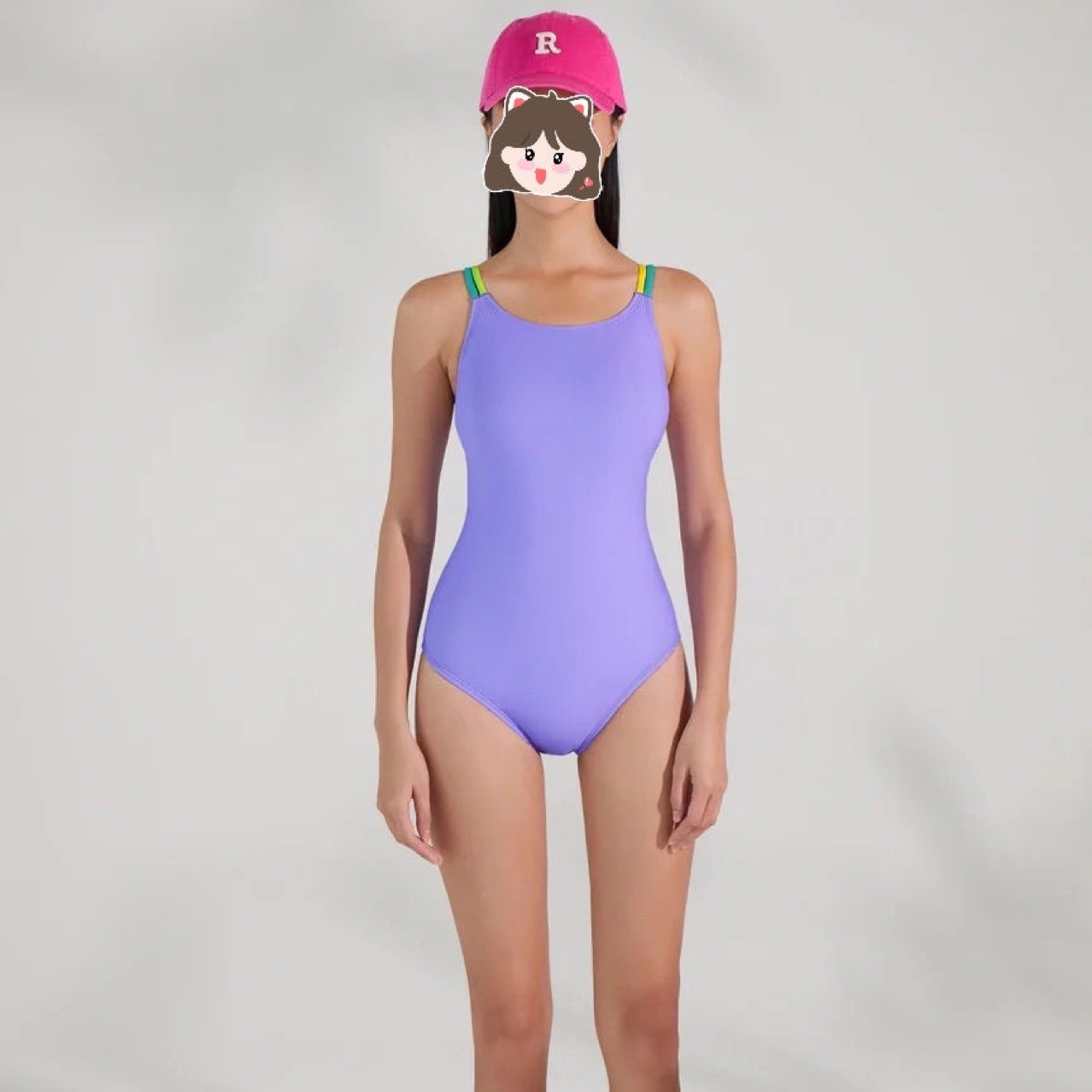 2025 새로운 더블 레이어 멀티 컬러 숄더 스트랩 바디 타이트 경쟁 수영복 여성 프로 스포츠 훈련 미드 포크 커버 벨리스토어 가기