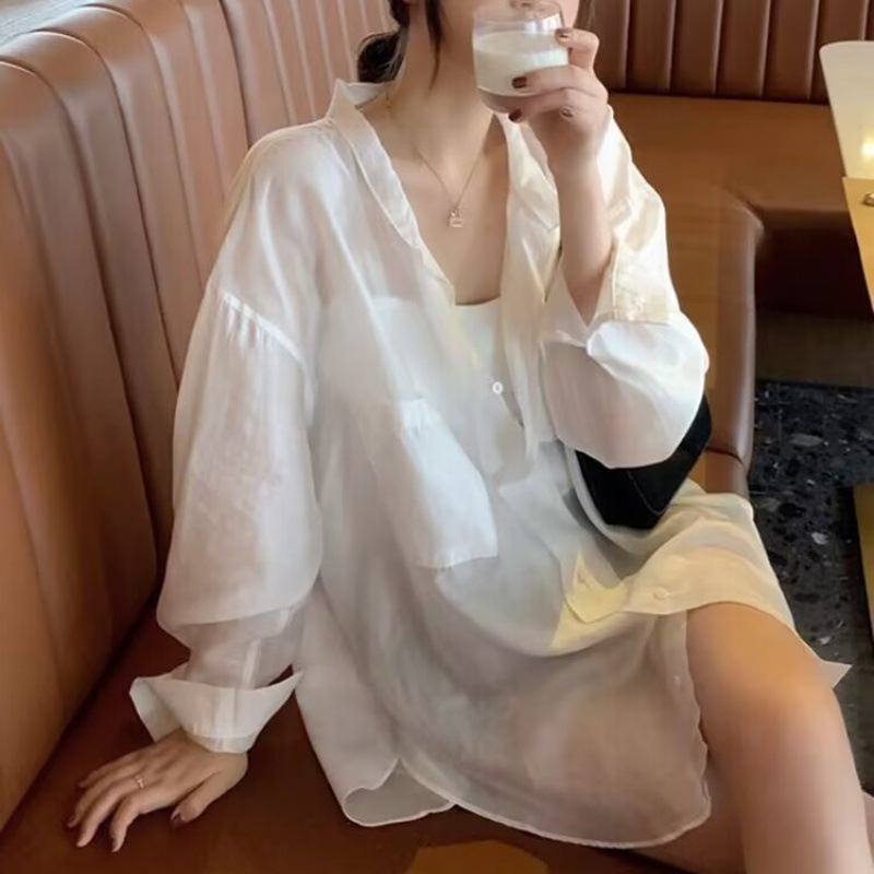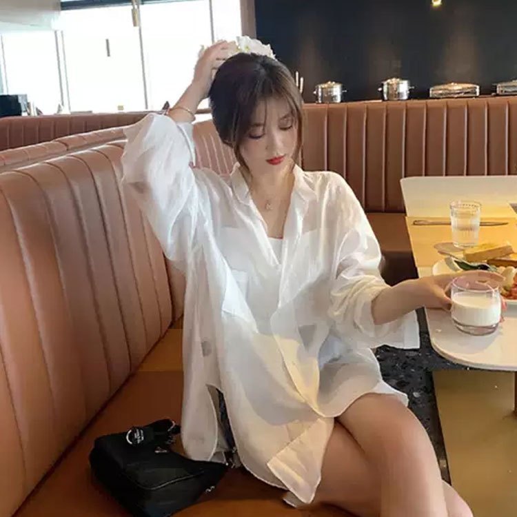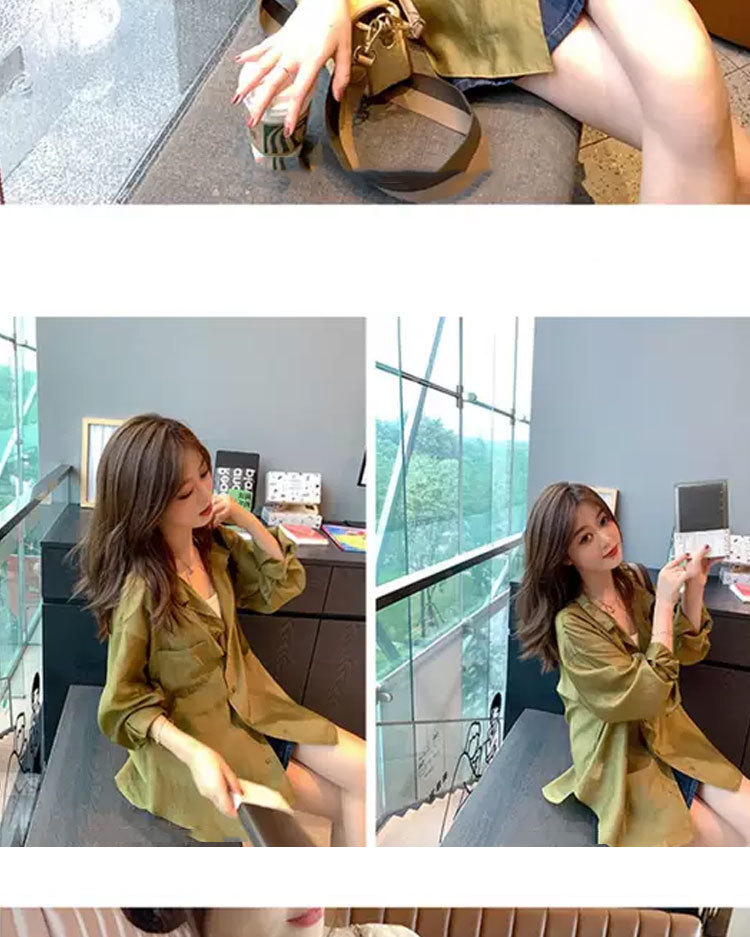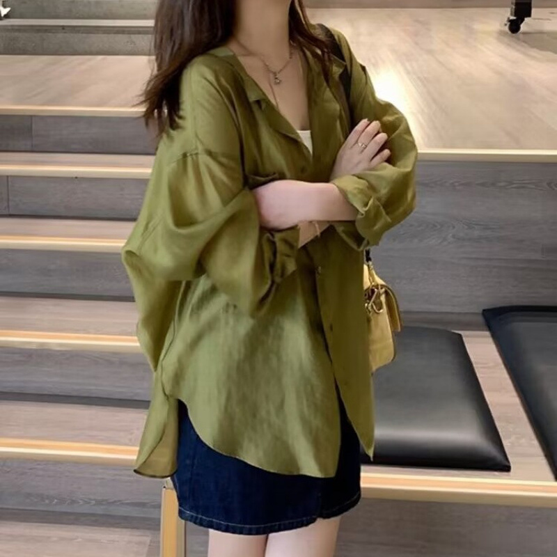 셔츠 여성용 작은 코트 여성용 얇은 짧은 태양 스크리닝 의류 여성 외부 착용 새로운 이른 봄 주름 방지 여름 서양식