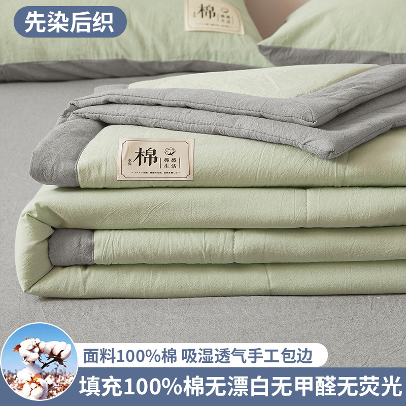 클래스 A 신장 면 여름 시원한 이불 에어컨 이불 4피스 세트 순면 기계 세탁 가능한 싱글 및 더블 여름 얇은 이불스토어 가기