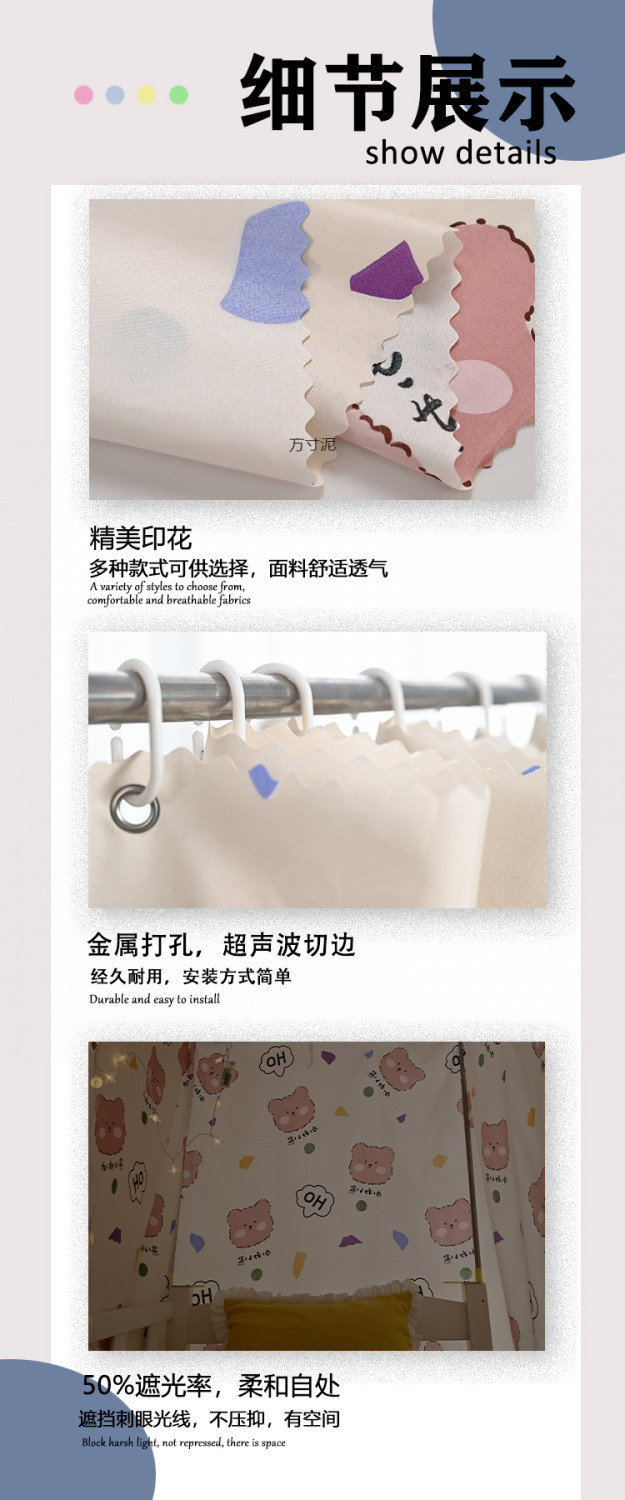 기숙사 침대 커튼 대학생 절반 그늘 커튼 상단 이층 하단 이층 여성 남성 침실 바람 커튼 커튼 대외 무역 도매스토어 가기