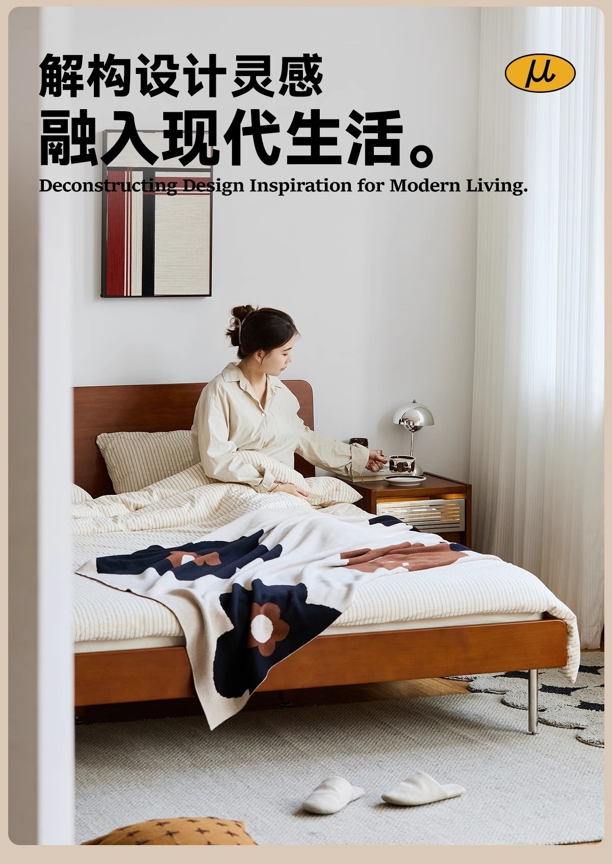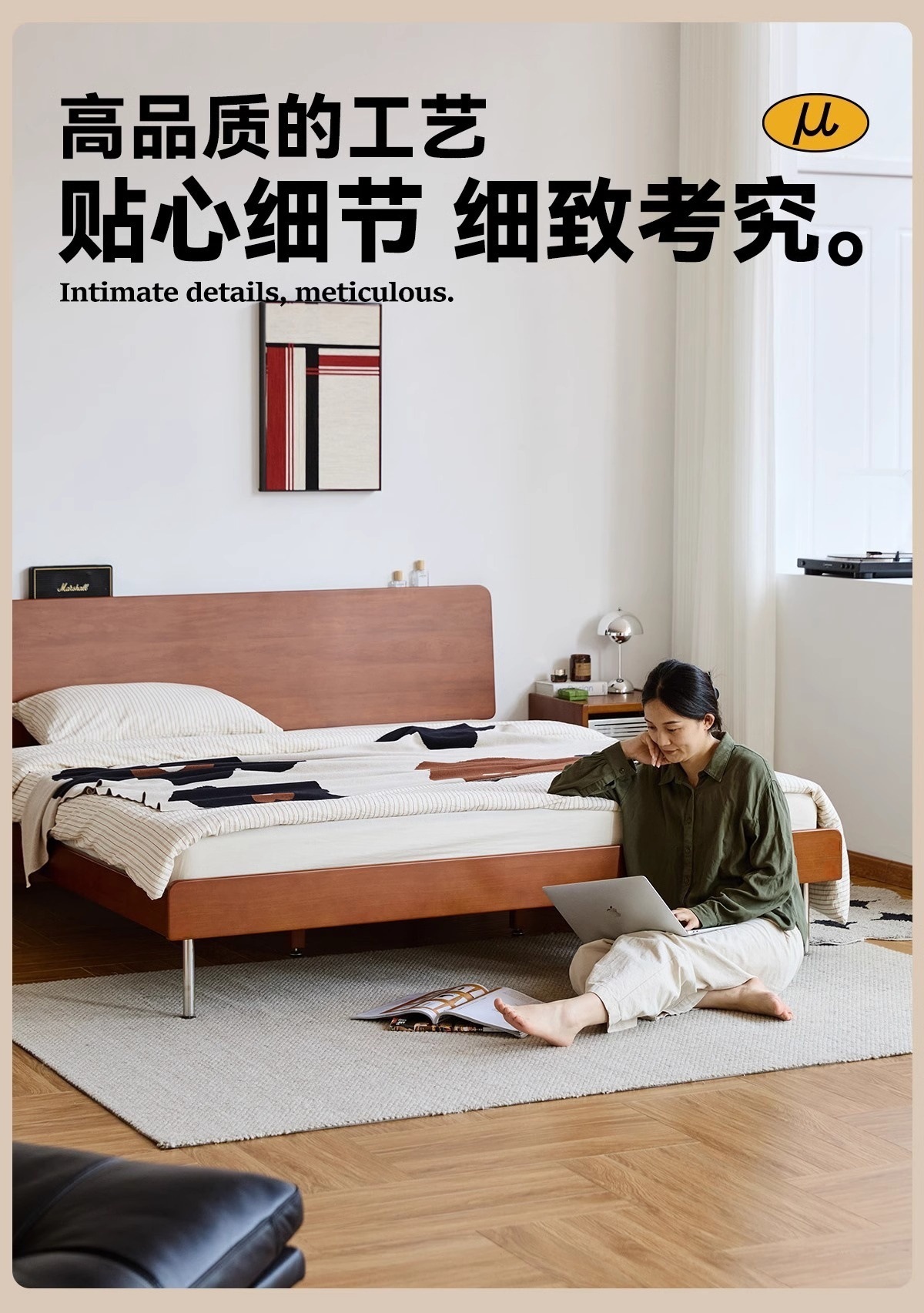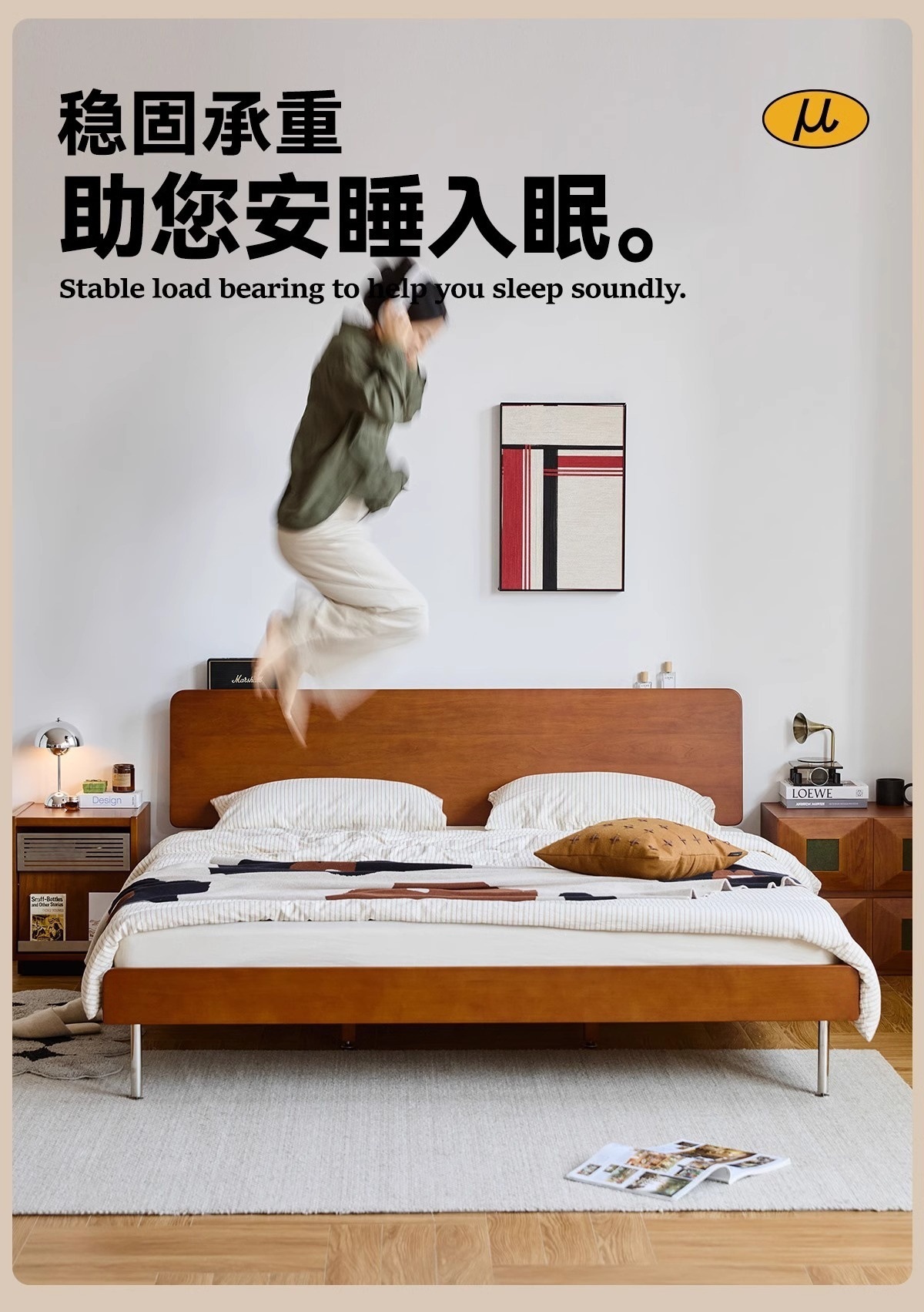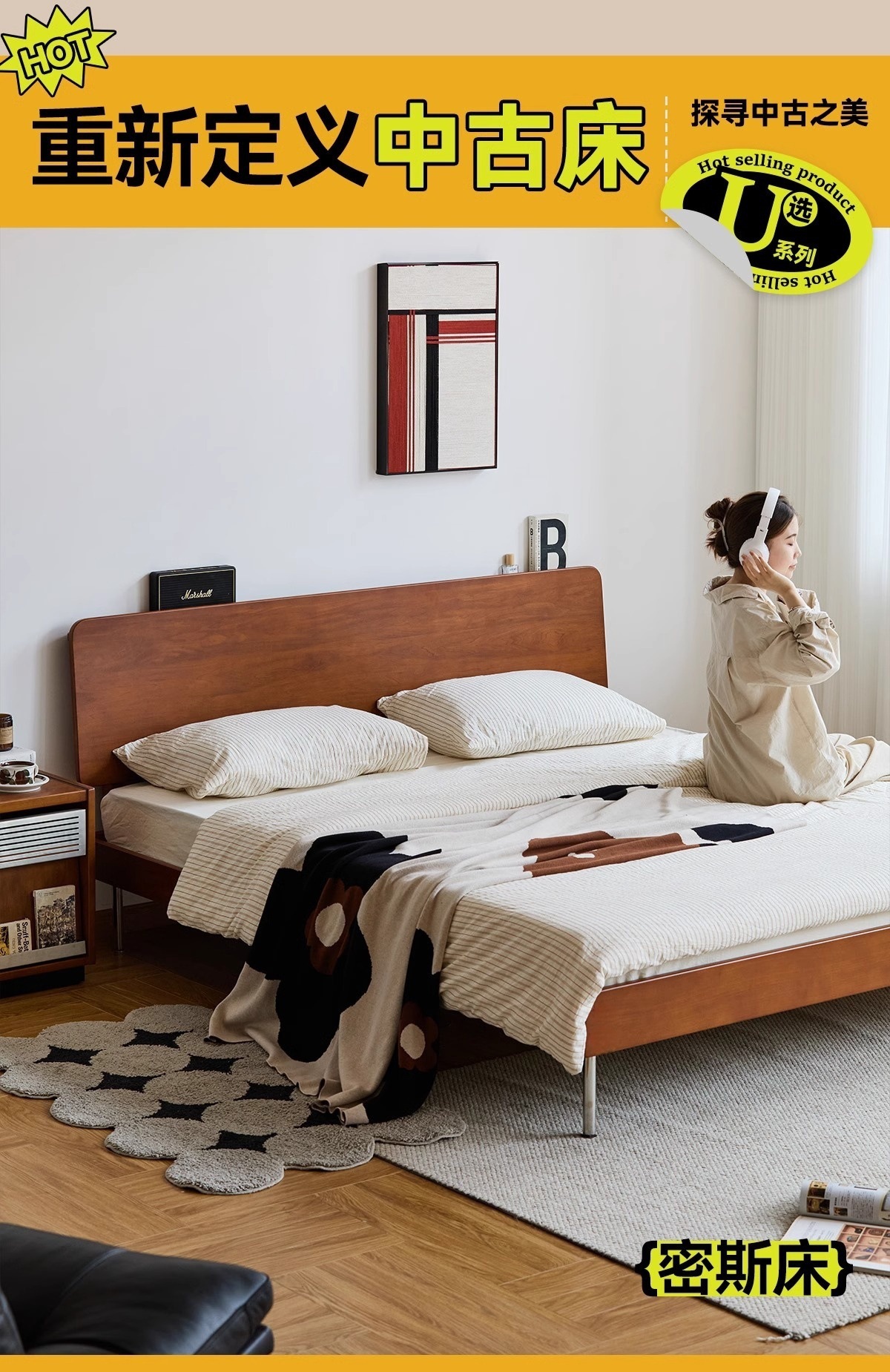 오일라 올 원목 침대 북유럽 복고풍 소형 부시우드 1.5m 일본식 싱글 침대 1.8m 더블 침대스토어 가기