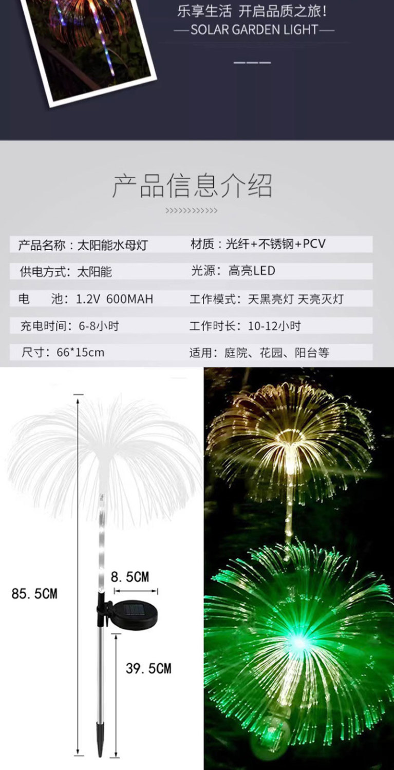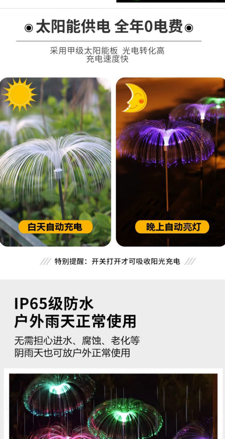 태양 광섬유 조명 야외 다채로운 색상 변경 안뜰 정원 led 빛나는 해파리 조명 지상 플러그 분위기 조명 공장스토어 가기
