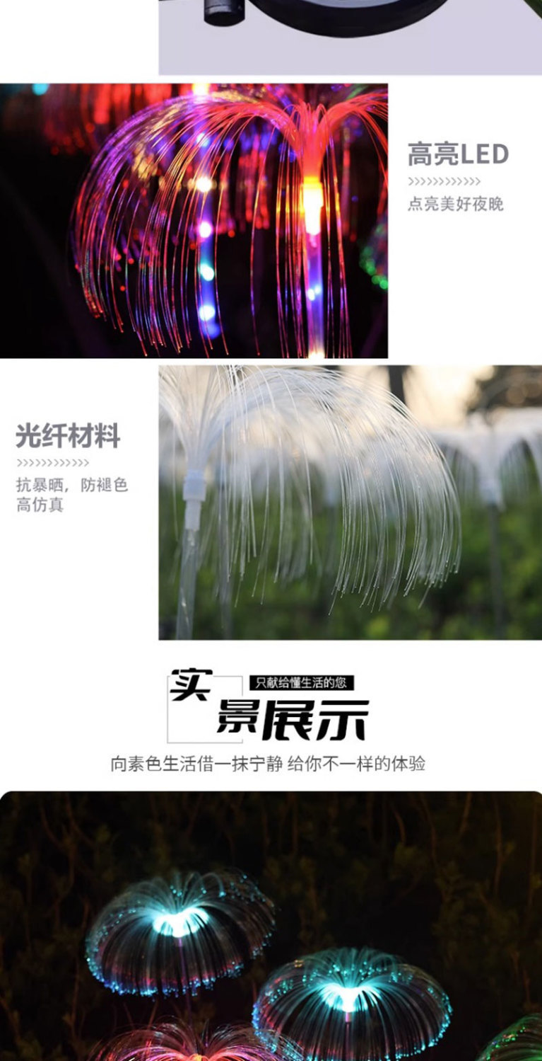 태양 광섬유 조명 야외 다채로운 색상 변경 안뜰 정원 led 빛나는 해파리 조명 지상 플러그 분위기 조명 공장