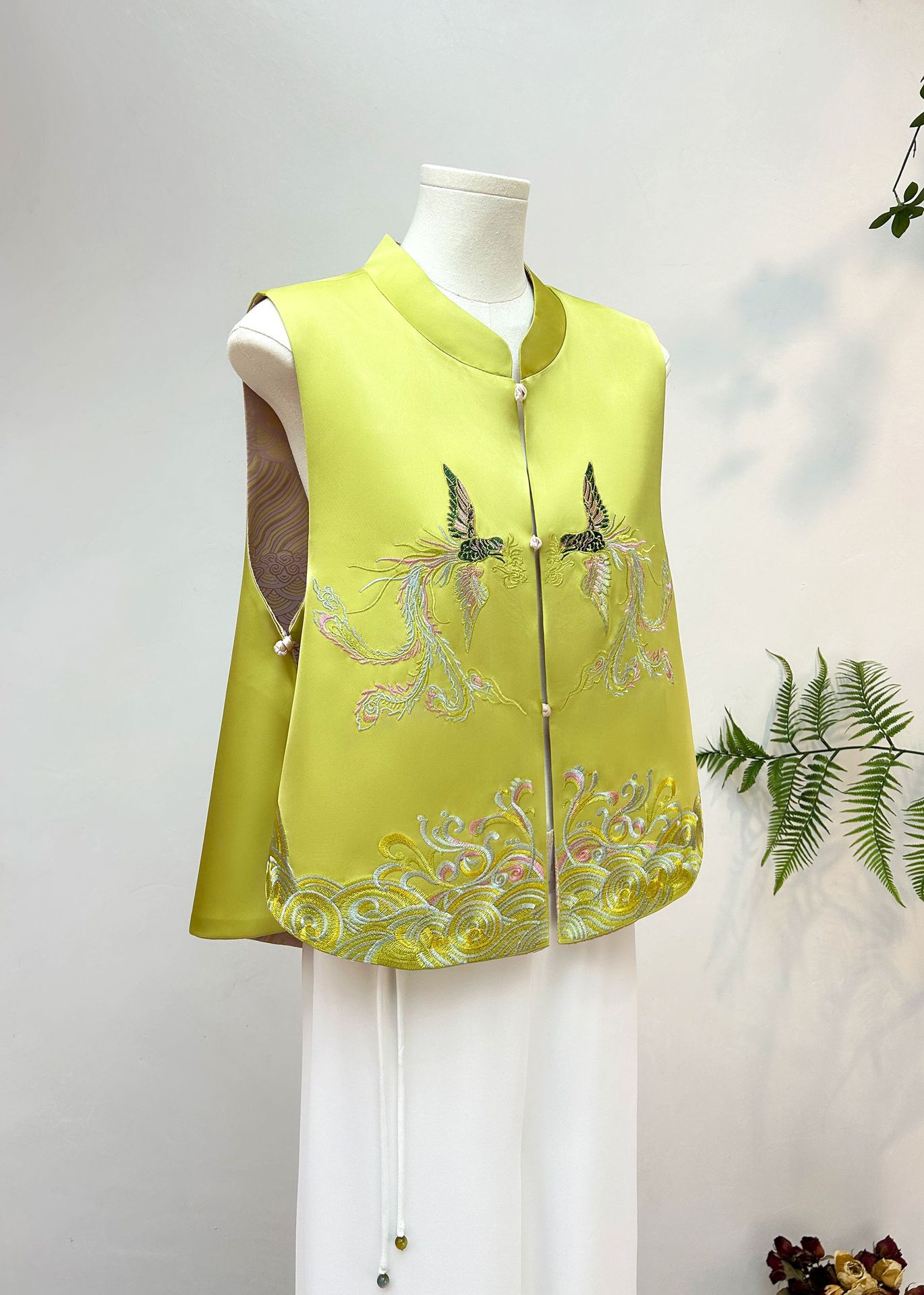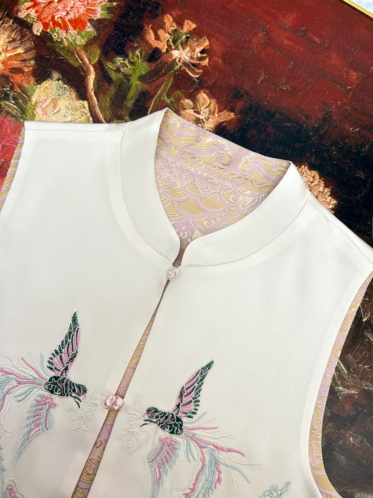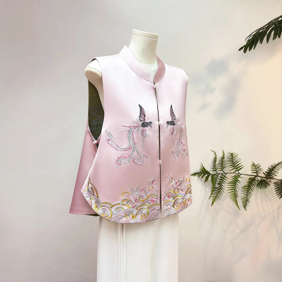 새로운 중국 스타일 피닉스 양면 착용 조끼 여성 봄과 여름 2025 새로운 국가 스타일 수직 칼라 젊은 연령 감소 조끼스토어 가기