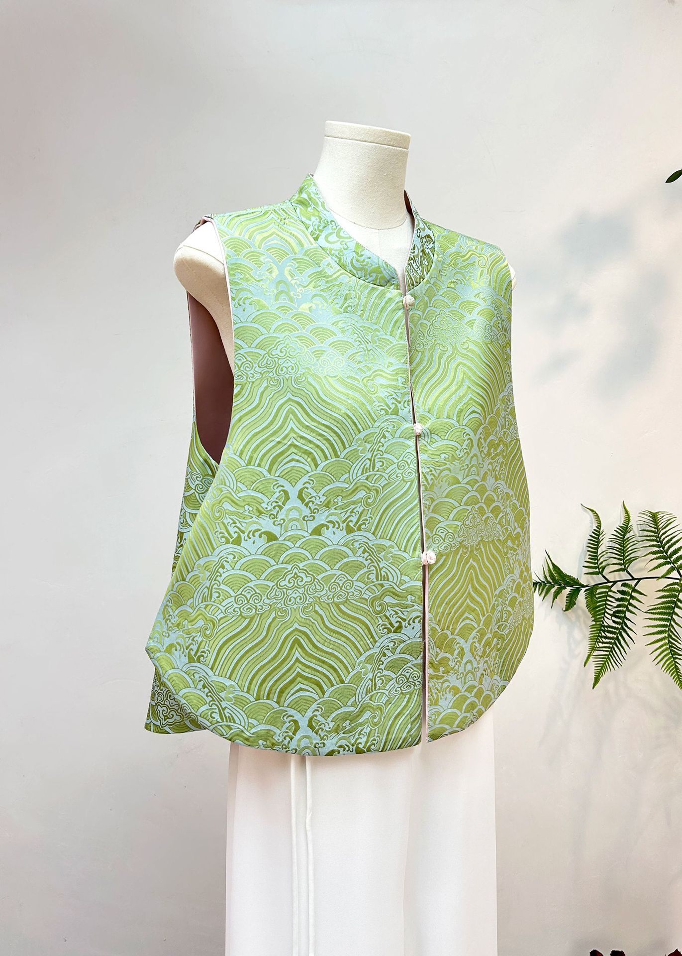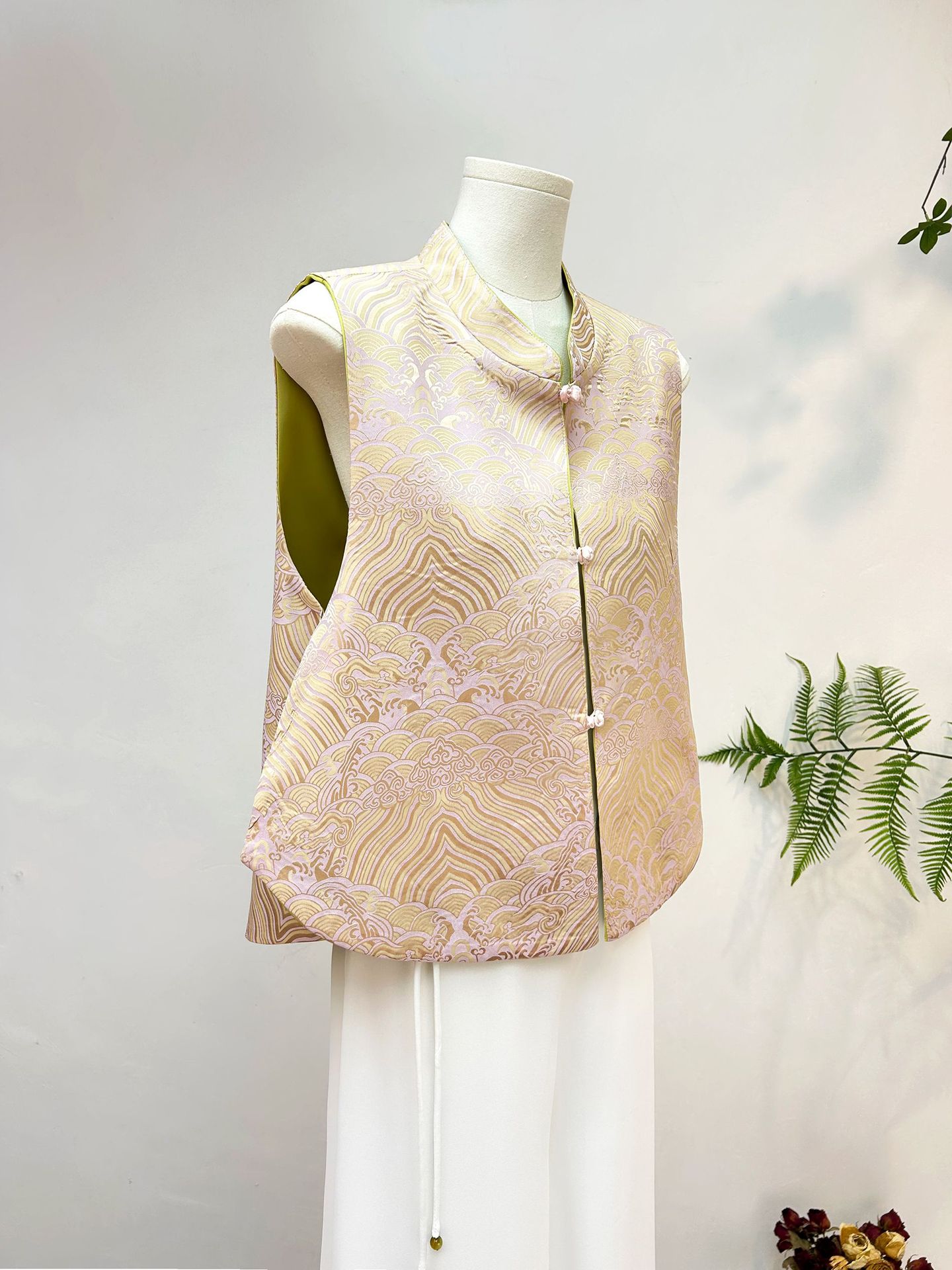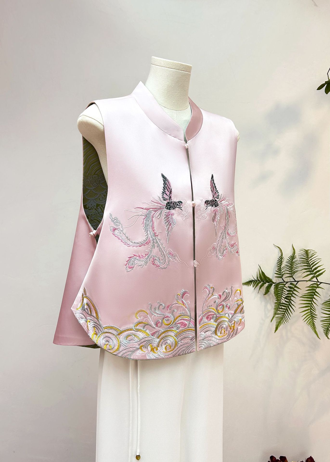 새로운 중국 스타일 피닉스 양면 착용 조끼 여성 봄과 여름 2025 새로운 국가 스타일 수직 칼라 젊은 연령 감소 조끼스토어 가기
