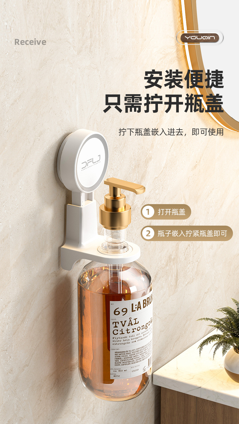 새로운 벽걸이형 손세정제 디스펜서, 무타공 샴푸/샤워젤 병 홀더, 욕실 흡착식 주방세제 거치대