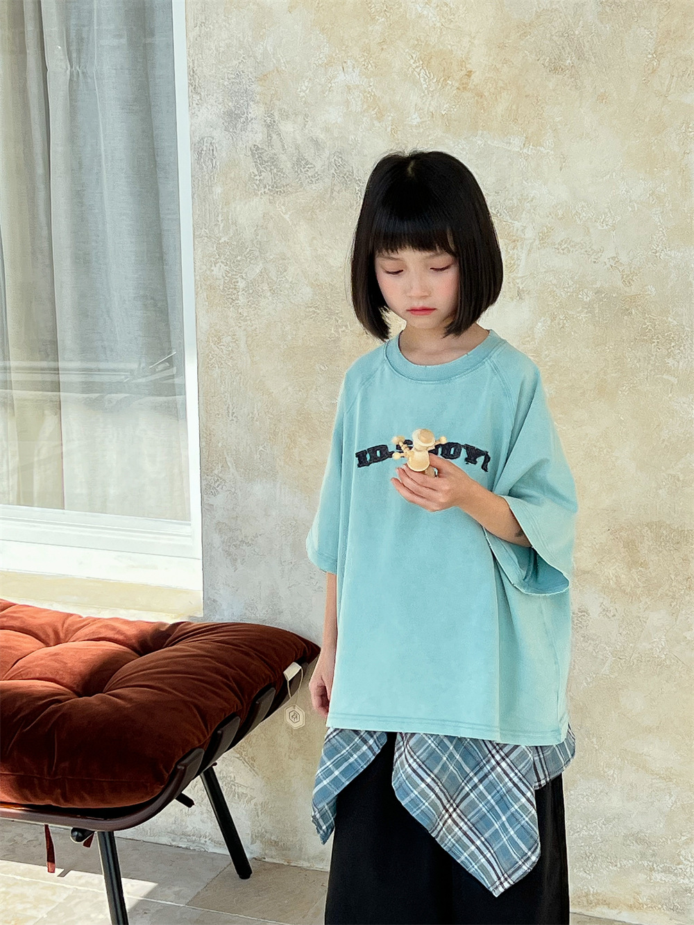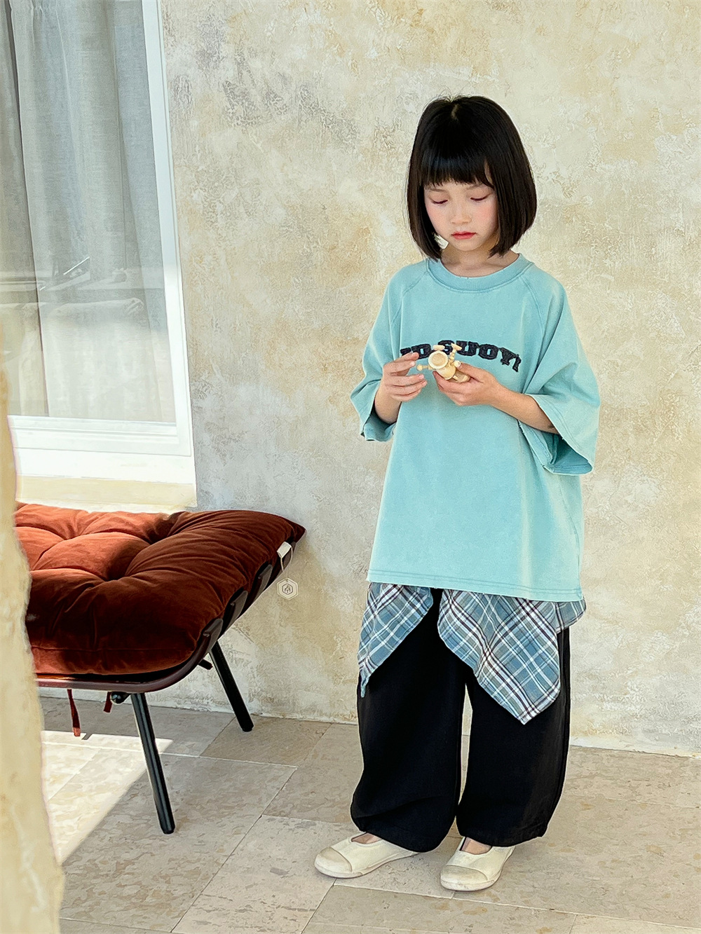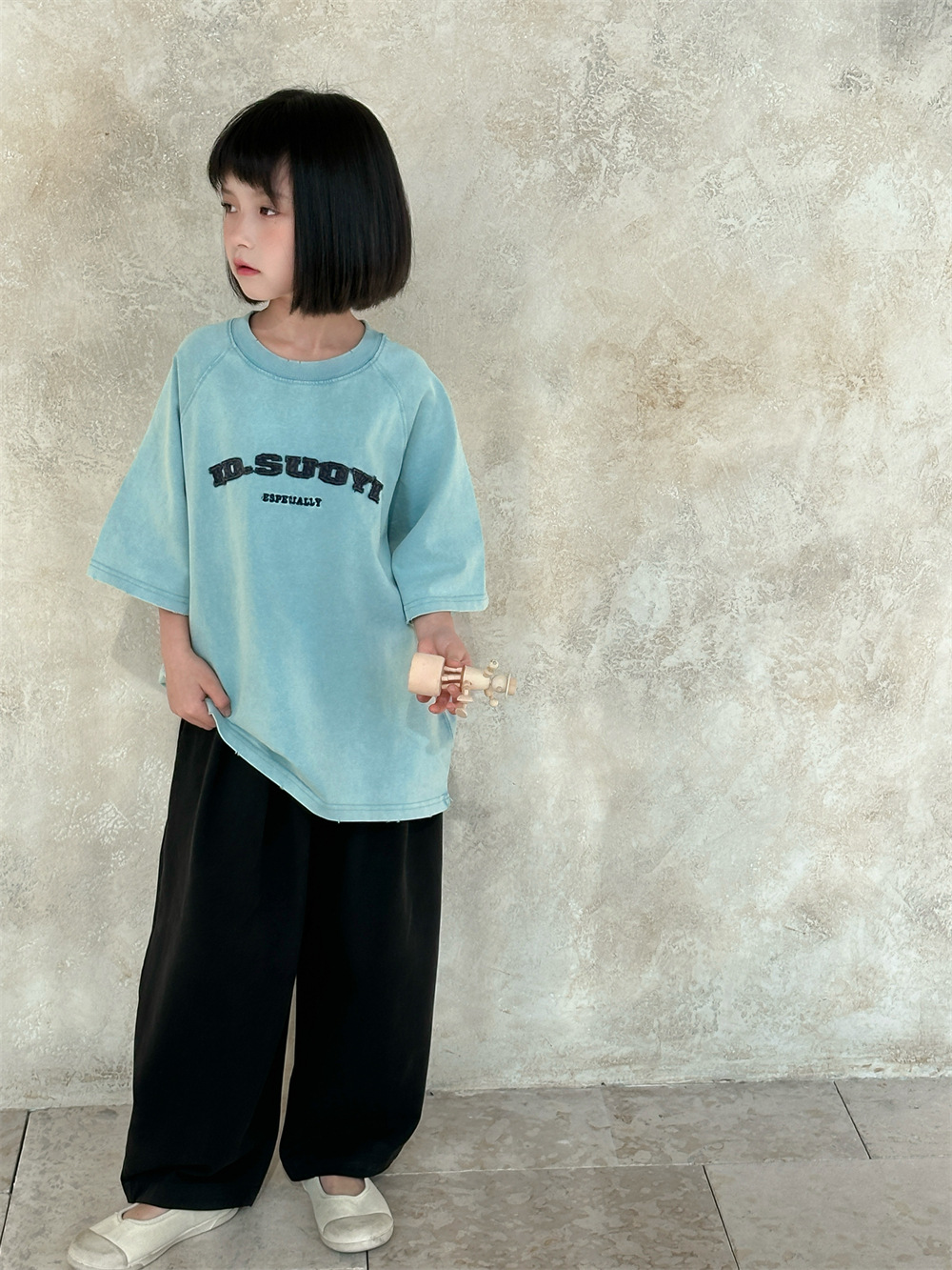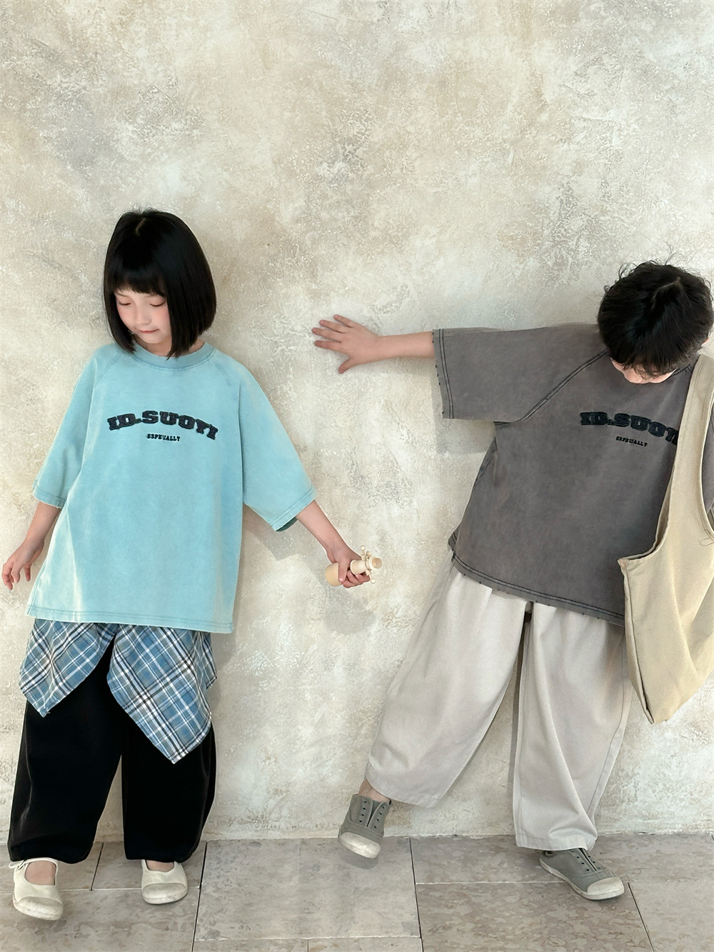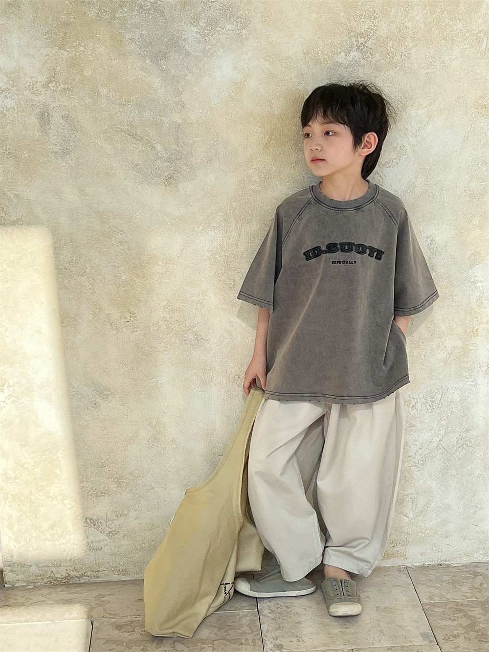 2025 새로운 여름 한국 스타일 어린이 올드 레터 반팔 소년과 소녀 패션 느슨한 유행 멋진 티셔츠 탑스토어 가기