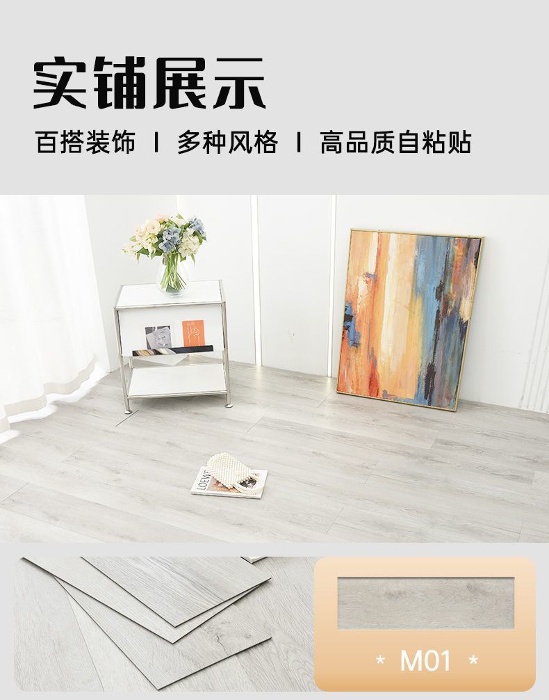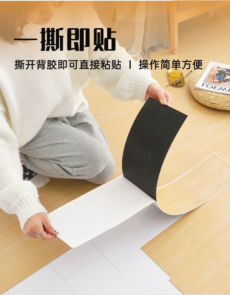 1 평방 PVC 나뭇결 자체 접착 바닥 스티커 플라스틱 바닥 가죽 가정용 오래된 바닥 개조 시멘트 바닥 직접 포장스토어 가기