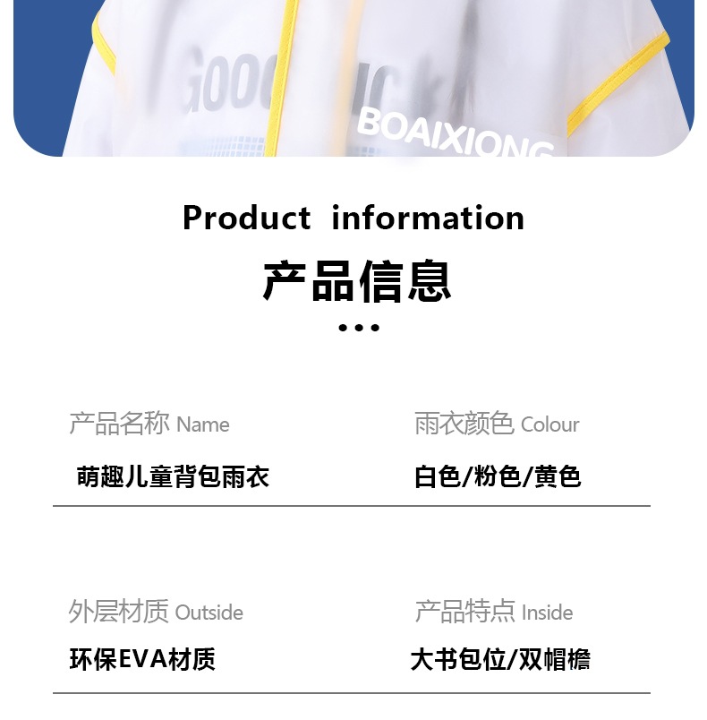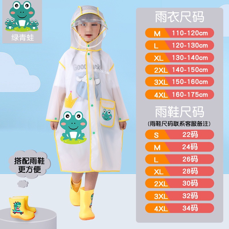 어린이 비옷 소년과 소녀 어린이 초등학교 학생 전신 방수 벨트 스쿨백 유치원 판초