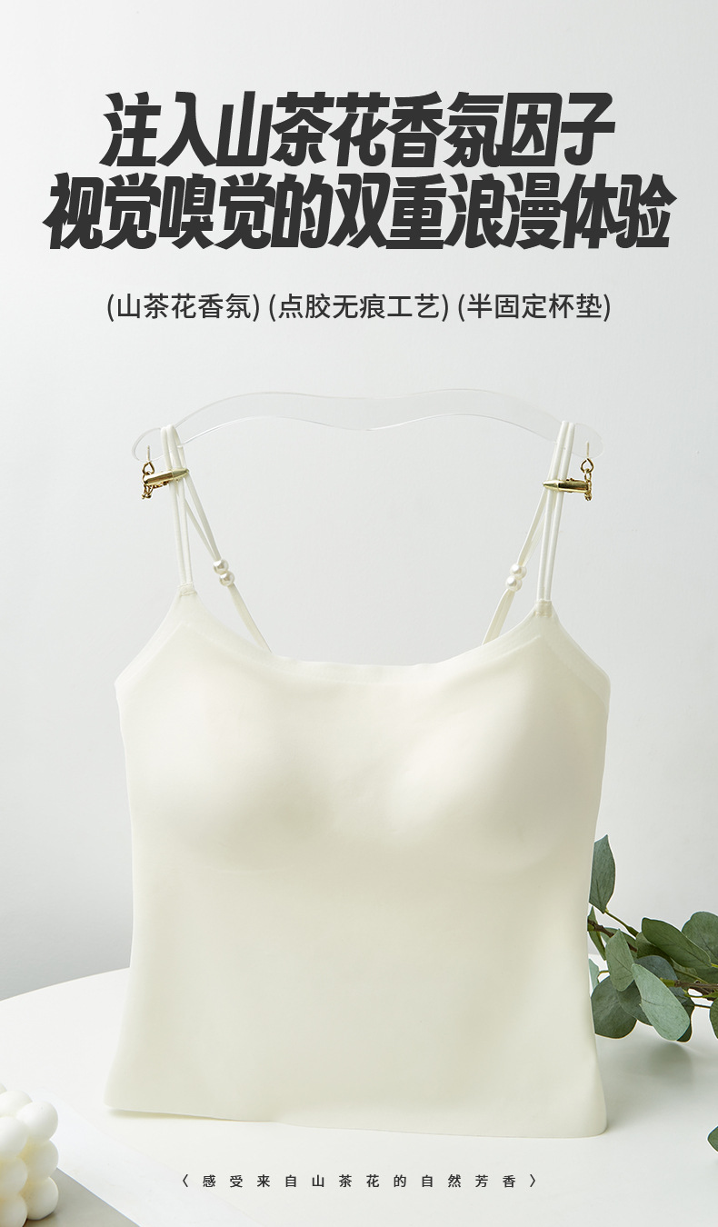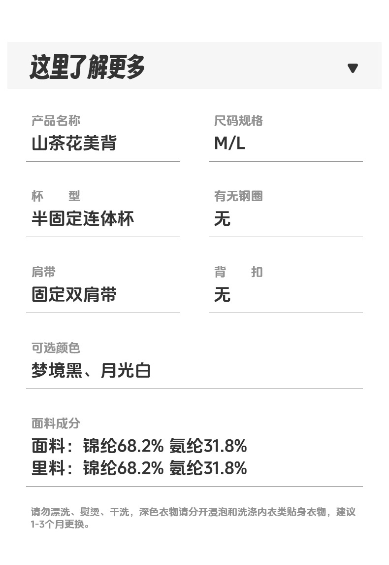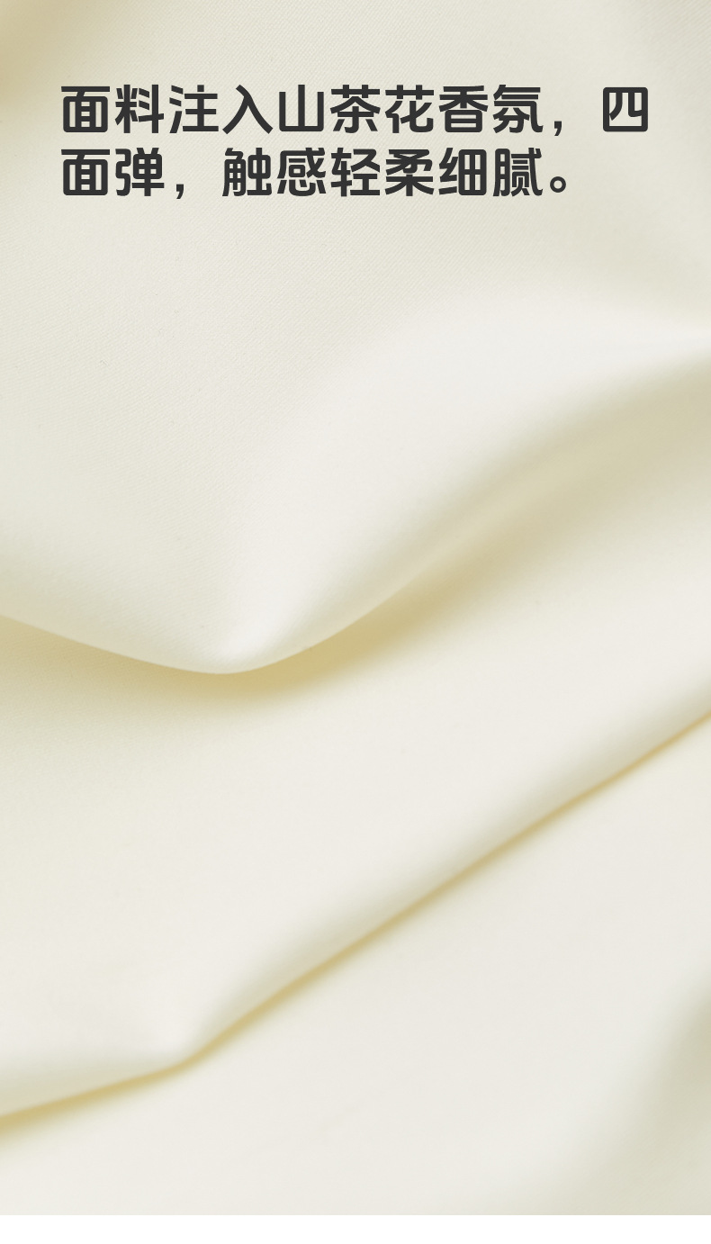 锦氨面料织就第二层肌肤,贴肤无痕,轻盈显背薄。融合山茶花香氛,释放淡雅香气,触感如SPA般沁凉舒爽,夏日穿出高级体感。