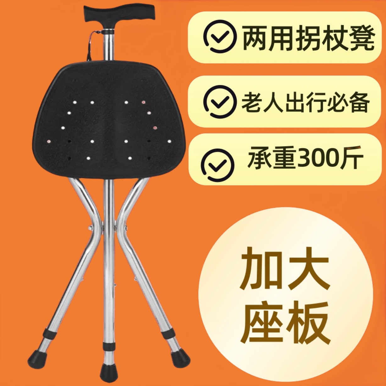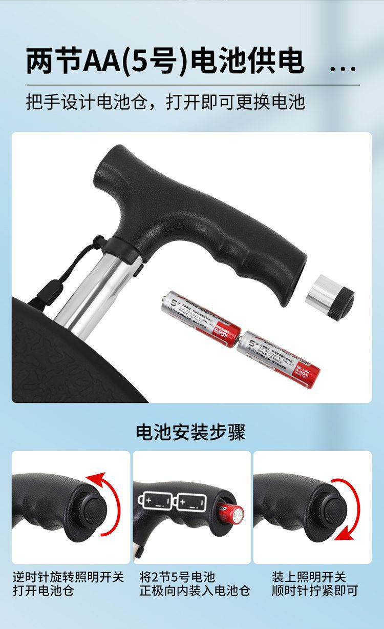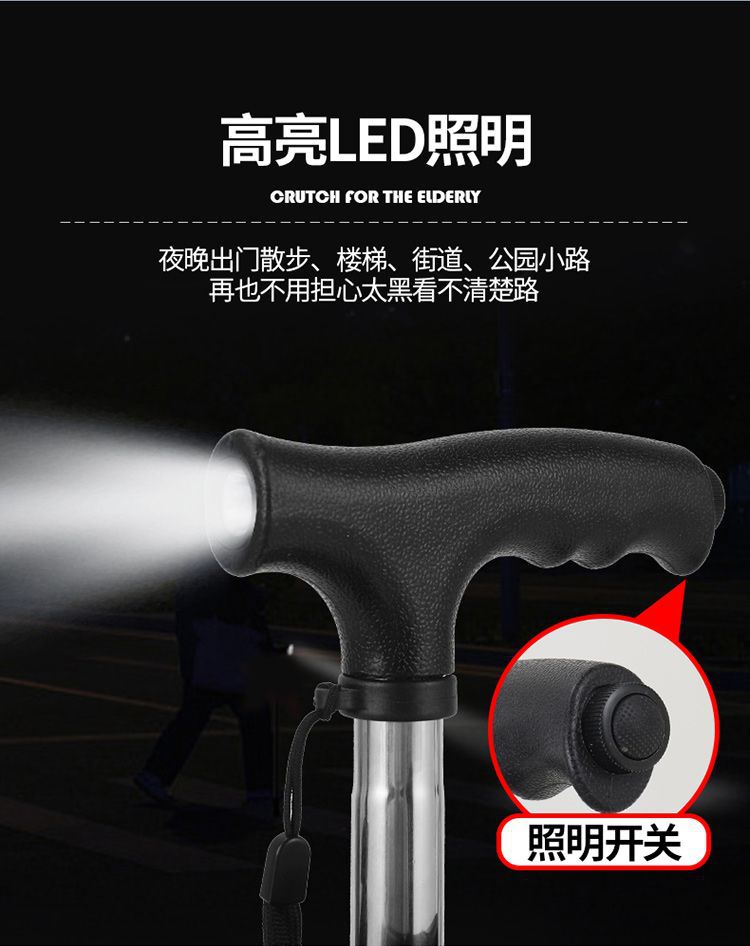 새로운 지팡이 의자, 손전등이 달린 확장형 좌석, 여행용 접이식 및 앉을 수 있는 휴대용 의자, 지팡이, 등산용 지팡이