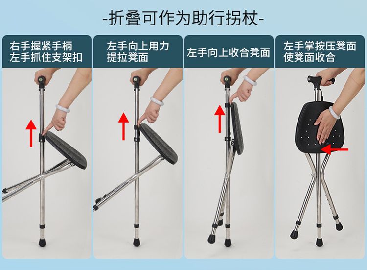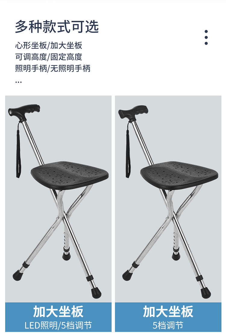 새로운 지팡이 의자, 손전등이 달린 확장형 좌석, 여행용 접이식 및 앉을 수 있는 휴대용 의자, 지팡이, 등산용 지팡이스토어 가기