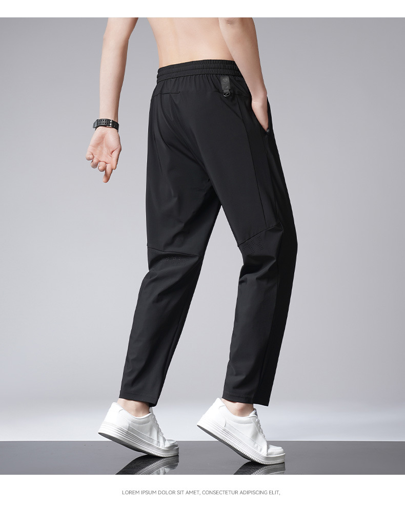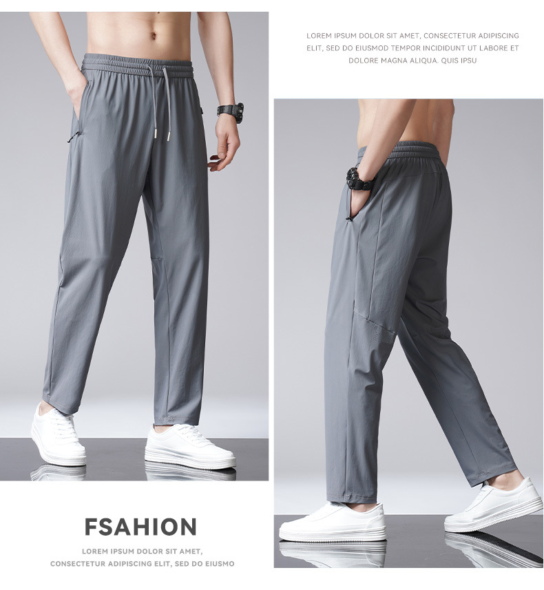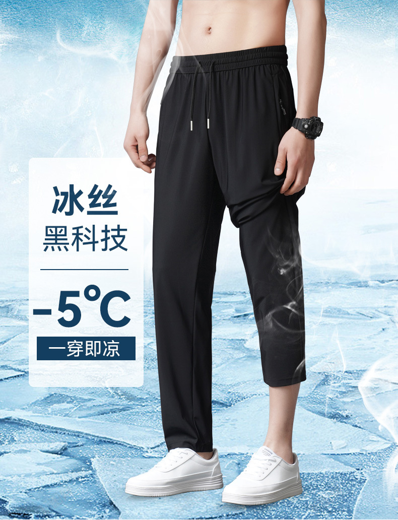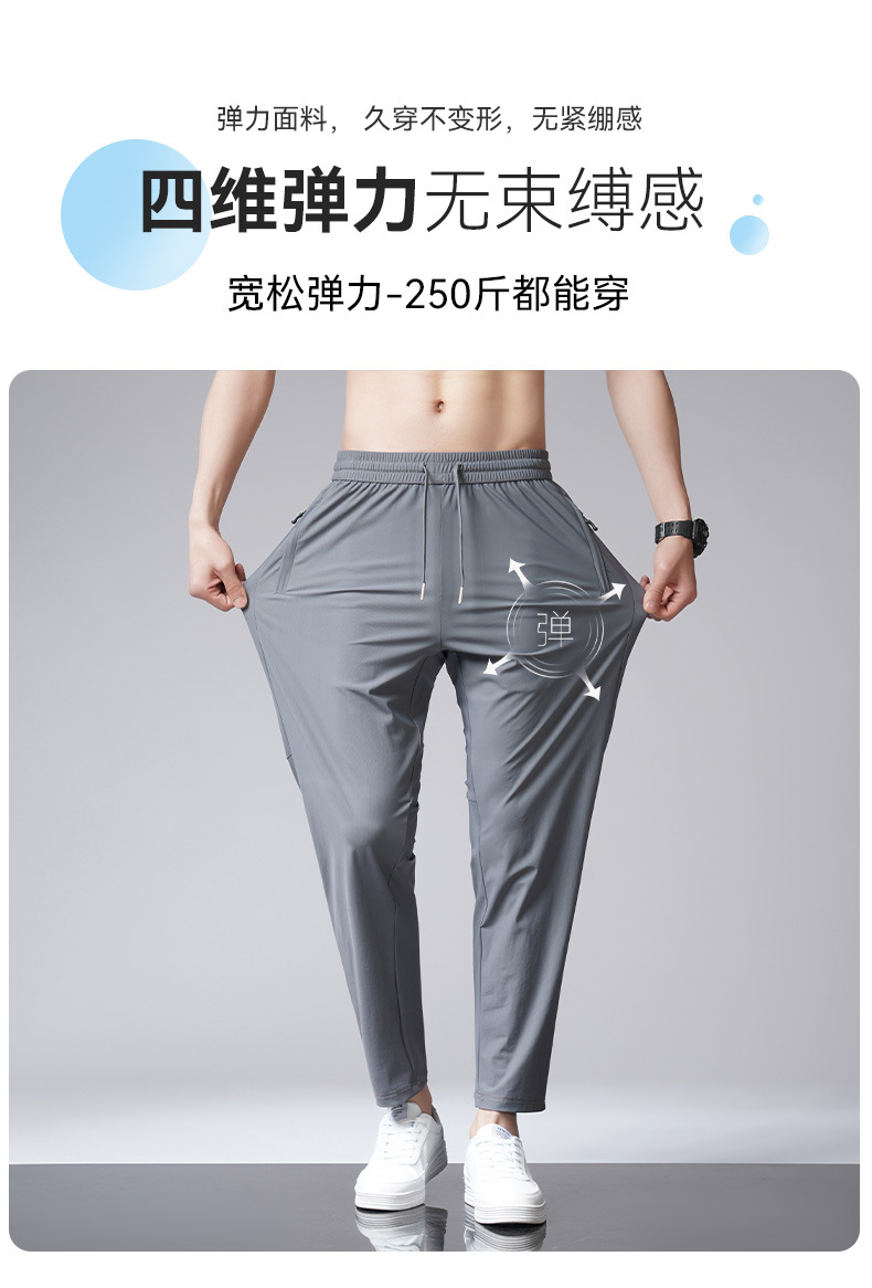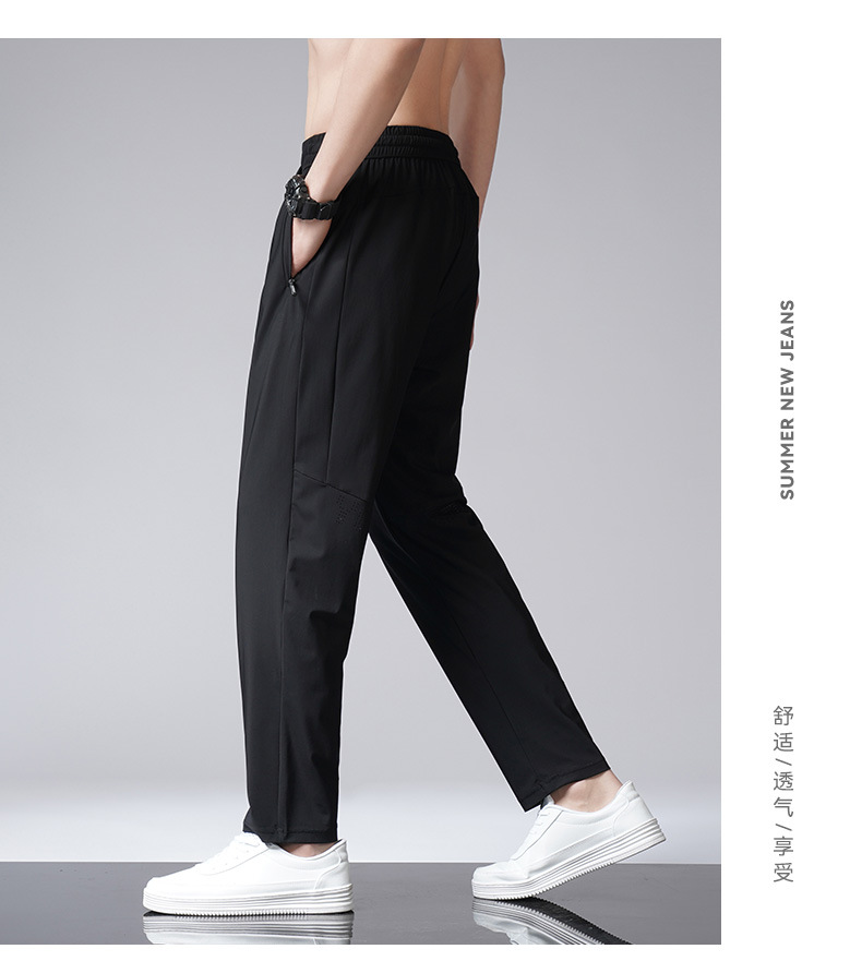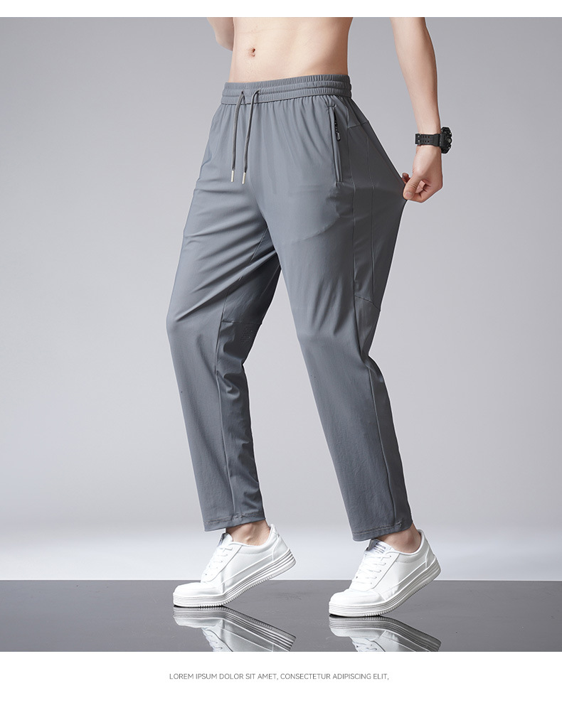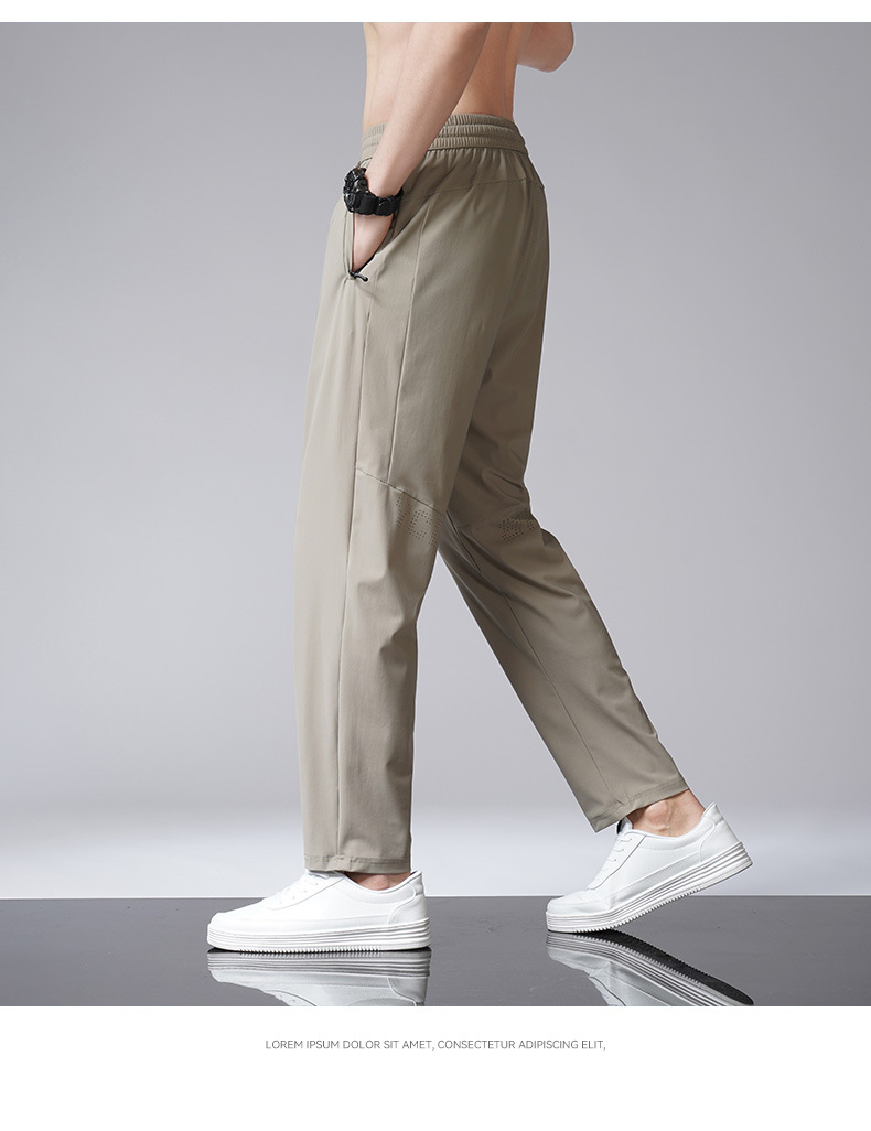 아이스 실크 바지 남자 여름 새로운 차가운 통기성 유두 스트레이트 캐주얼 바지 스트레치 탄성 허리 레이스 업 간단한 바지스토어 가기
