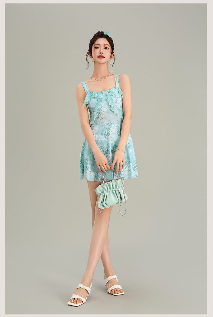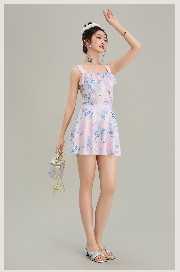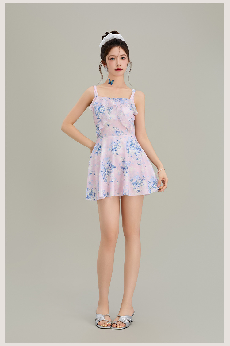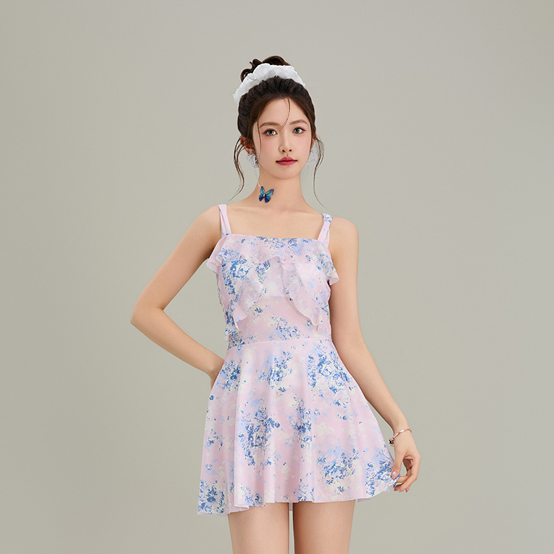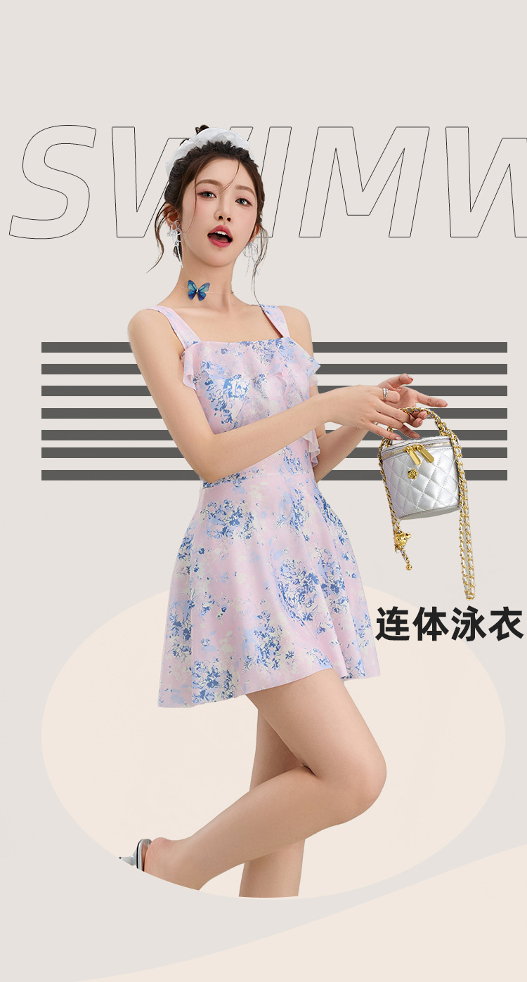 원피스 수영복 여성 원피스 스커트 스타일 슬링 인 스타일 하이 레벨 배꼽 슬리밍 온천 휴가 수영복 도매