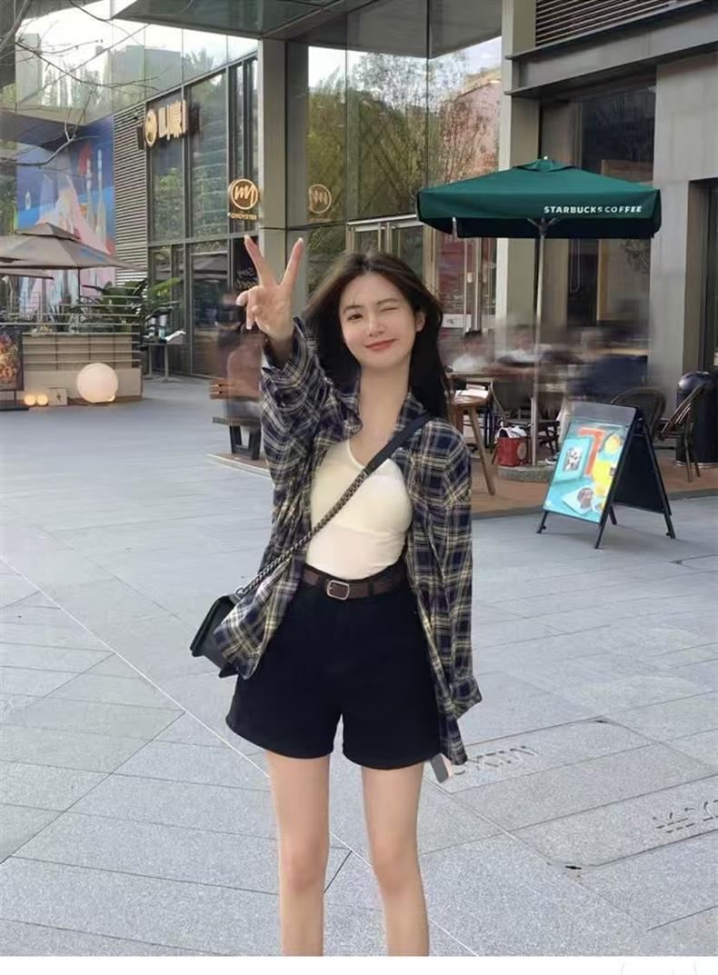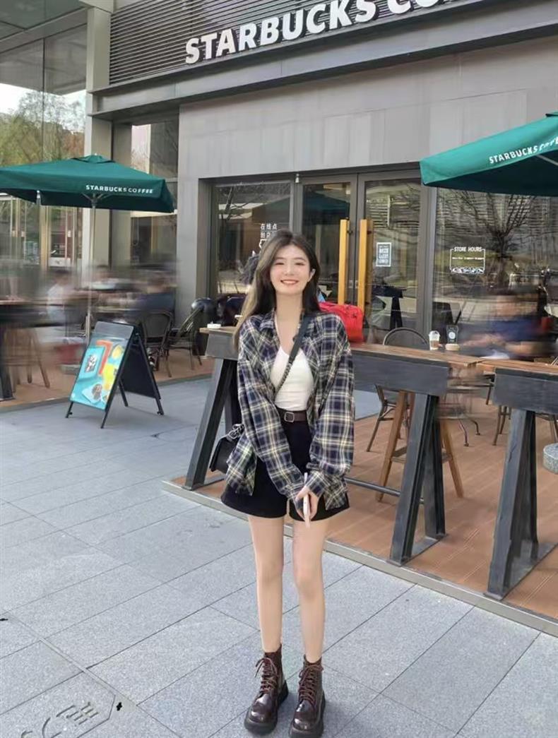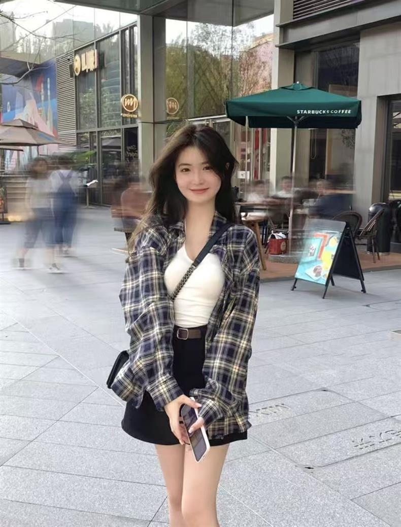 레트로 스타일 다용도 라펠 루즈 셔츠 가을 체크무늬 긴팔 포켓 여성 셔츠스토어 가기