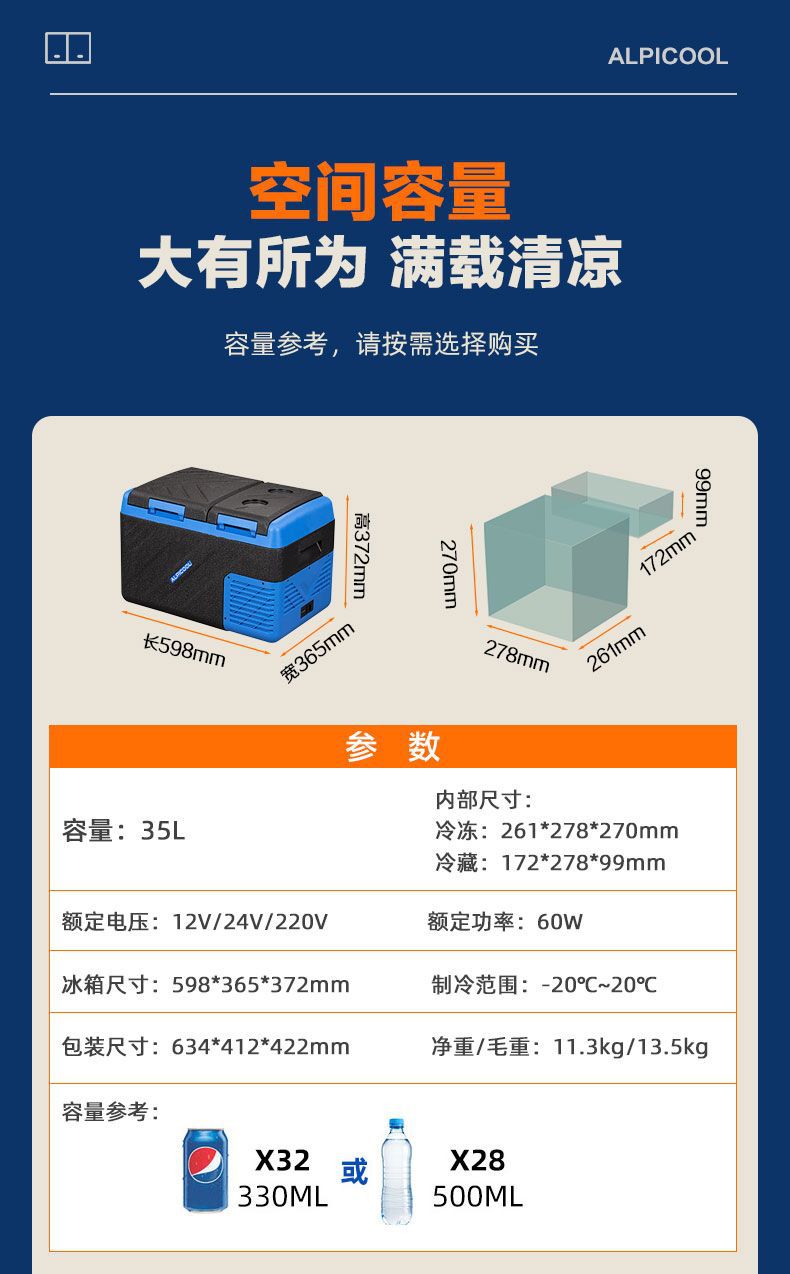 Alpicool Ice Tiger 자동차 냉장고 소형 자동차 홈 이중 목적 트럭 냉동 냉장 냉동고 이중 온도 이중 챔버스토어 가기