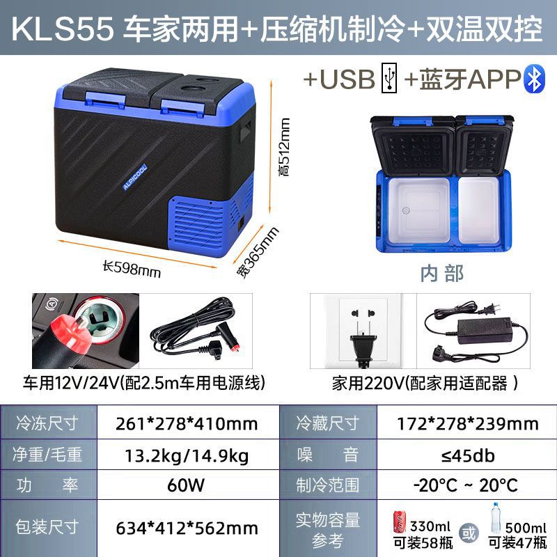 • KLS 이중 목적 이중 온도 이중 제어 이중 도어 55L 가정용 및 차량용