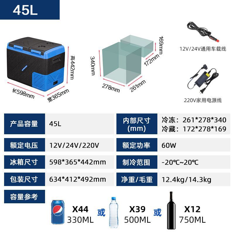 • KID 가정용 및 차량용 이중 용도 이중 온도 단일 제어 이중 도어 45L
